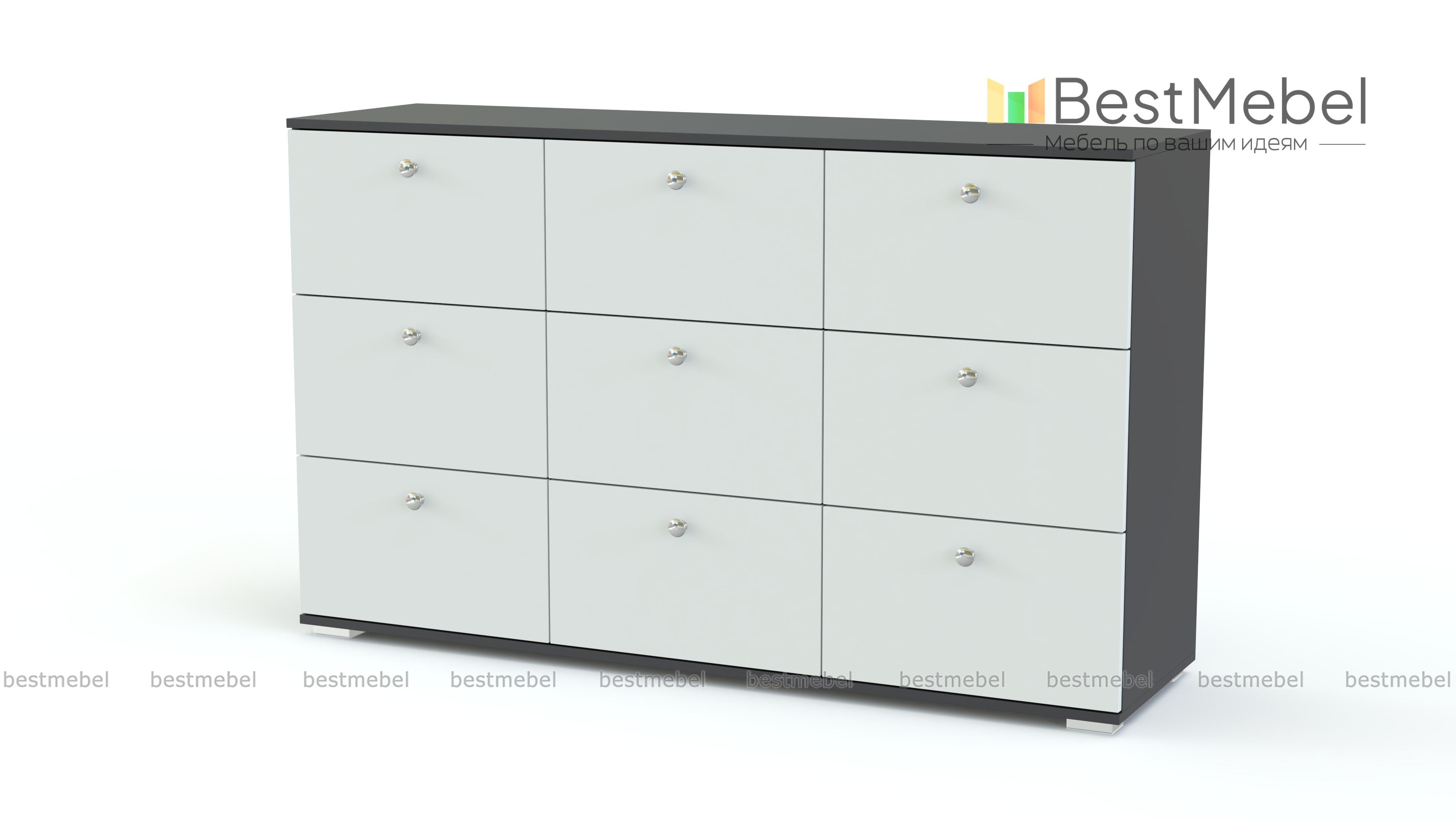 Комод COLORADO 04 BMS – это высокое качество материалов, оригинальный дизайн и простые формы. Стильная функциональность модели придется по душе поклонникам минималистичных интерьеров. Под просторной столешницей располагаются девять выдвижных ящичков для предметов гардероба, аксессуаров и множества мелочей. Корпус и фасады выполнены в контрастных цветах, яркие матовые дверцы дополнены ручками-рейлингами и открываются плавно и бесшумно. Купить комод COLORADO 04 BMS, подобрав оптимальные параметры, вы сможете в нашем интернет-магазине.