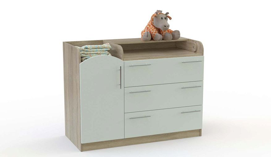 Комод Есения Нео 6 BMS – практичное решение для ухода за младенцем и хранения его вещей. Широкий и вместительный, комод оборудован тремя просторными выдвижными ящиками и распашным отделением с полками и фигурно вырезанной дверцей. Разделенная на две секции верхняя панель с защитными бортиками и откидным столиком позволяет удобно переодевать ребенка, разместив рядом необходимые средства гигиены. Купить комод Есения Нео 6 BMS с выбором цвета и размеров вы сможете в нашем интернет-магазине.