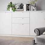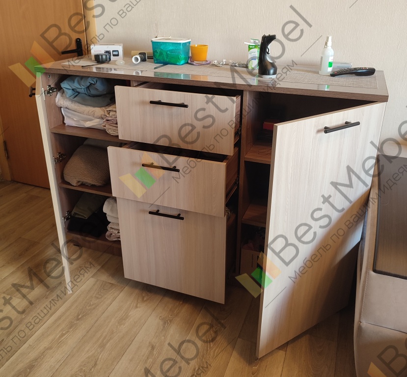 Отлично вписался комод на кухню под телевизор. Заказывала урезанный цоколь сзади, чтобы комод встал вплотную к стене и не мешал "толстый" цоколь.Очень довольна ценой, исполнением, быстрым изготовлением, бесплатной доставкой. Сроки не затягивают, консультация отличная.Всего Делала 3 заказа и в итоге было 7 изделий. Претензий вообще нет. Собирали шкаф самостоятельно, все понятно. Если эскиз для сборки напечатан мелко, то можно попросить, чтобы присылали на почту эскиз, очень удобно! Совет для заказывающих - лучше переплатите и закажите "кромку 2 мм для всех видимых деталей" - не пожалеете качеством! РЕКОМЕНДУЮ!