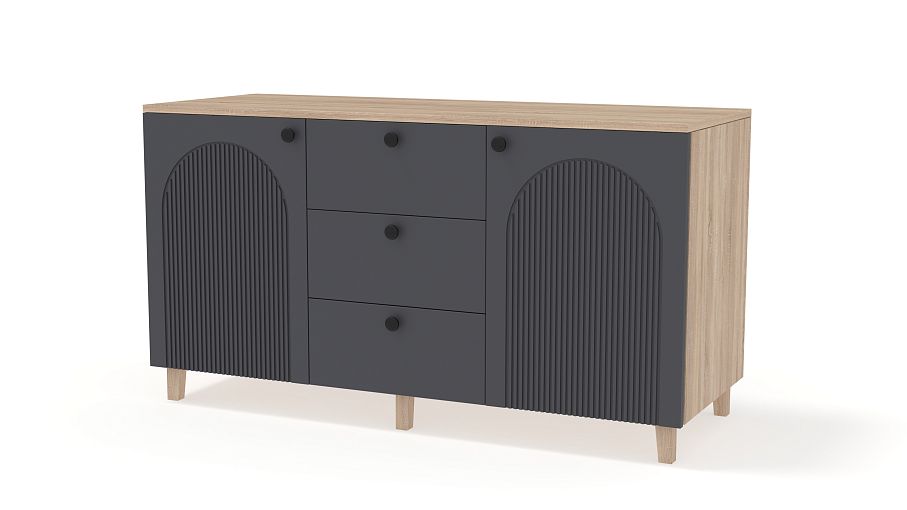 Комод Рене 1 BMS поможет сохранить порядок в комнате и добавит в интерьер стильные акценты. Под широкой столешницей, на которой эффектно смотрится декор, располагаются два распашных отделения с полками и ряд из трех вместительных выдвижных ящиков. В современном дизайне комода использована комбинация темного фактурного фасада и корпуса под древесный массив. Купить комод Рене 1 BMS приглашаем в наш интернет-магазин, подобрав размеры и цвет по своему вкусу.