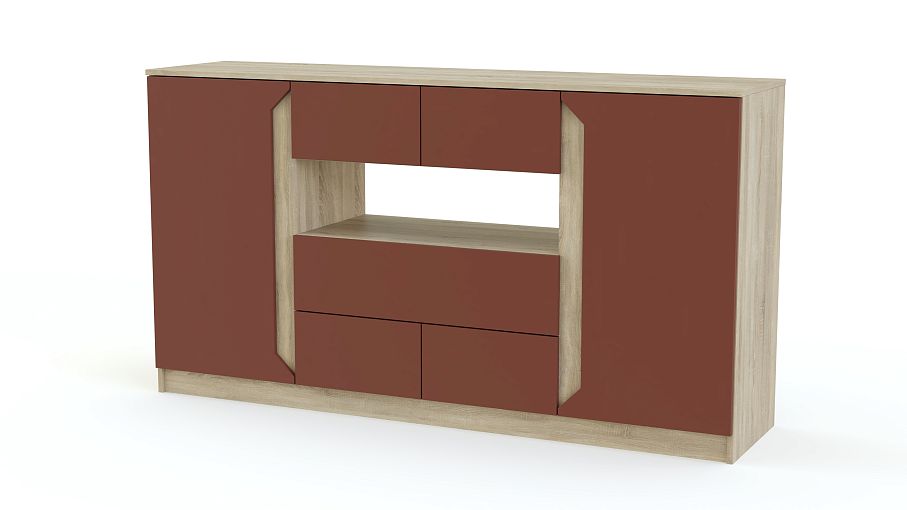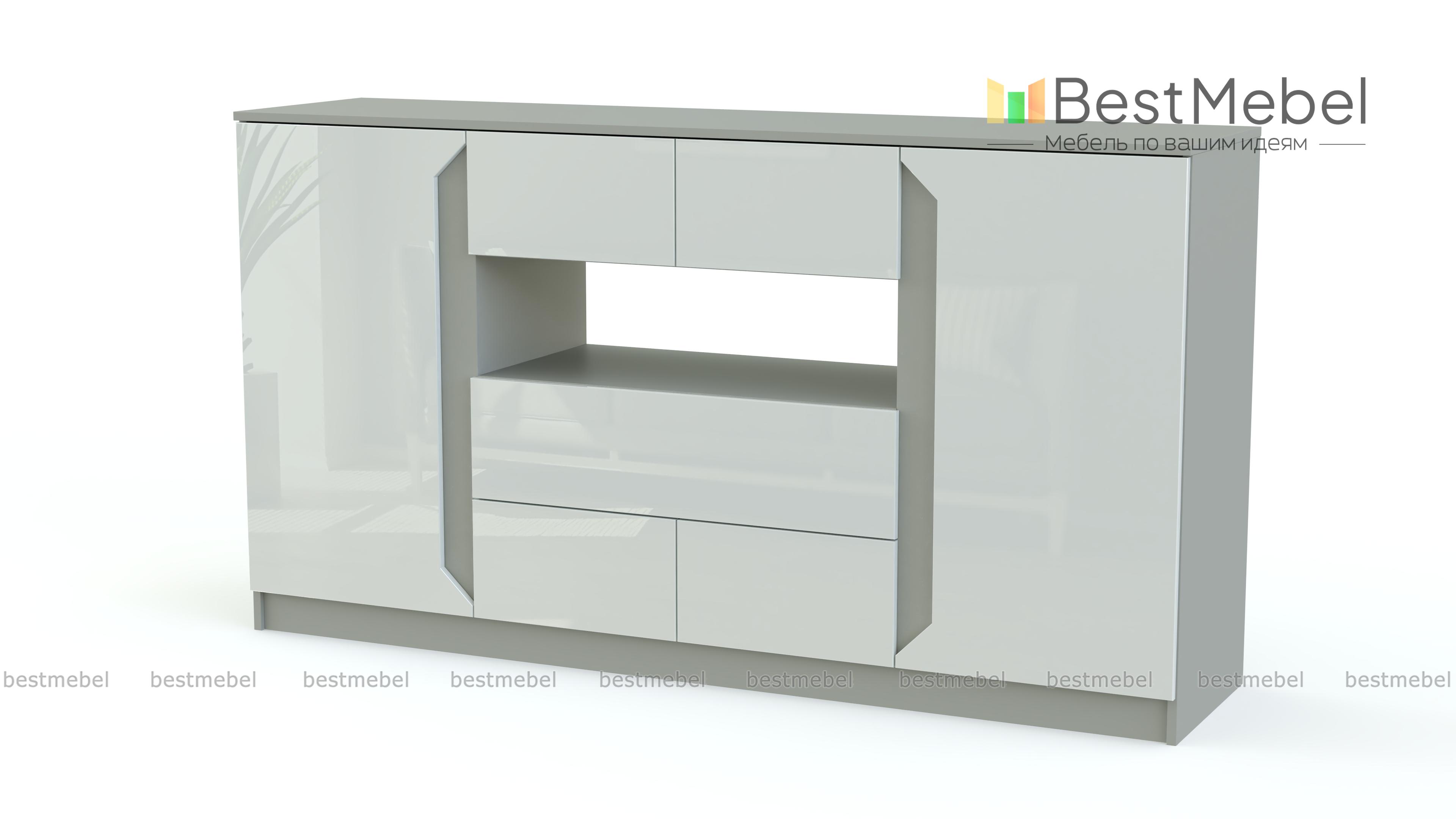 Крупногабаритная вместительная модель Виго 10 BMS не смотрится громоздкой за счет матовых фасадов и полностью открытой полки. Комод оснащен пятью разноразмерными выдвижными ящиками без ручек и двумя распашными отделениями с оригинальными декоративными вырезами. Такая вещь позволит обеспечить аккуратное хранение постельному белью, предметам гардероба, аксессуарам, книгам и прочим важным мелочам. Удобство и стильная расцветка делают комод отличным выбором для современной спальни или гостиной.