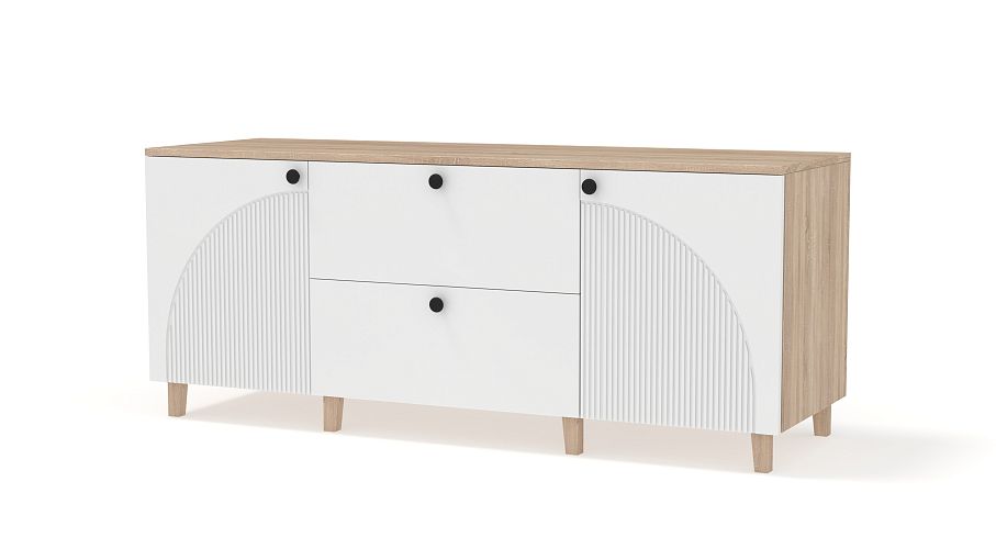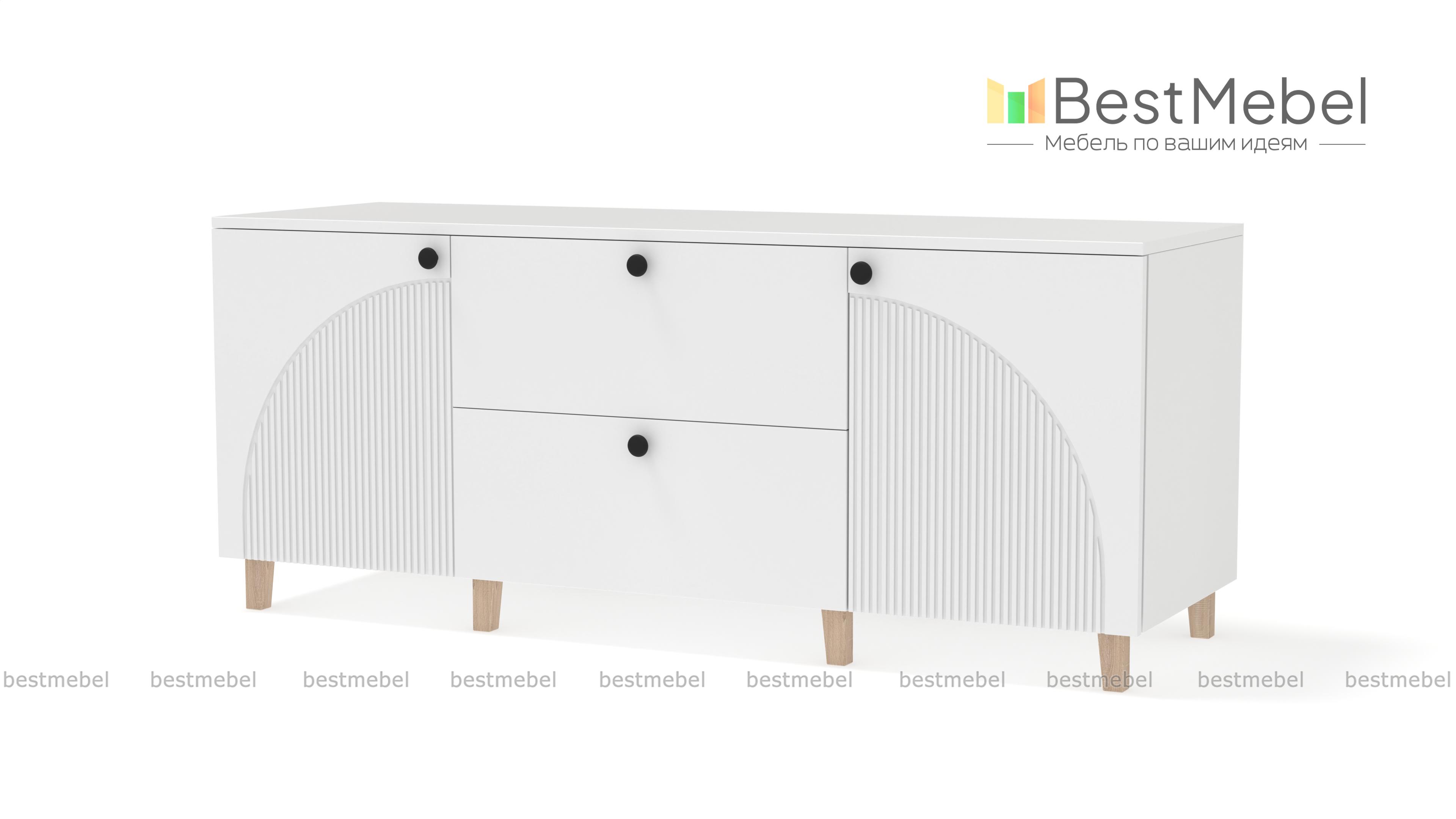 Комод Вивьен 4 BMS с высокими деревянными ножками поможет вам организовать хранение вещей и украсит интерьер. Широкий современный комод оборудован парой распашных секций с полками и двумя вместительными ящиками в центральной части. Прочный корпус изготовлен из ламинированной плиты, которая выдерживает большие нагрузки, а для фасада использован МДФ со стильным рельефом. Купить комод Вивьен 4 BMS приглашаем в наш интернет-магазин, по желанию изменив цвет и размеры.