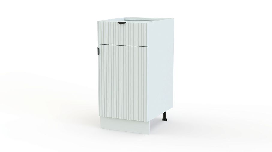 Шкаф нижний с дверцей и ящиком Альберт BMS поможет вам разместить как столовые приборы, так и посуду или продукты. Фасады распашной дверцы и ящика имеют стильный рельеф и оснащены полукруглыми торцевыми ручками, регулируемые ножки закрыты цоколем. Благодаря компактным размерам шкаф прекрасно подходит для небольших кухонь и студий. Купить шкаф нижний с дверцей и ящиком Альберт BMS вы сможете в нашем интернет-магазине, подобрав необходимые размеры и цвет по каталогу.