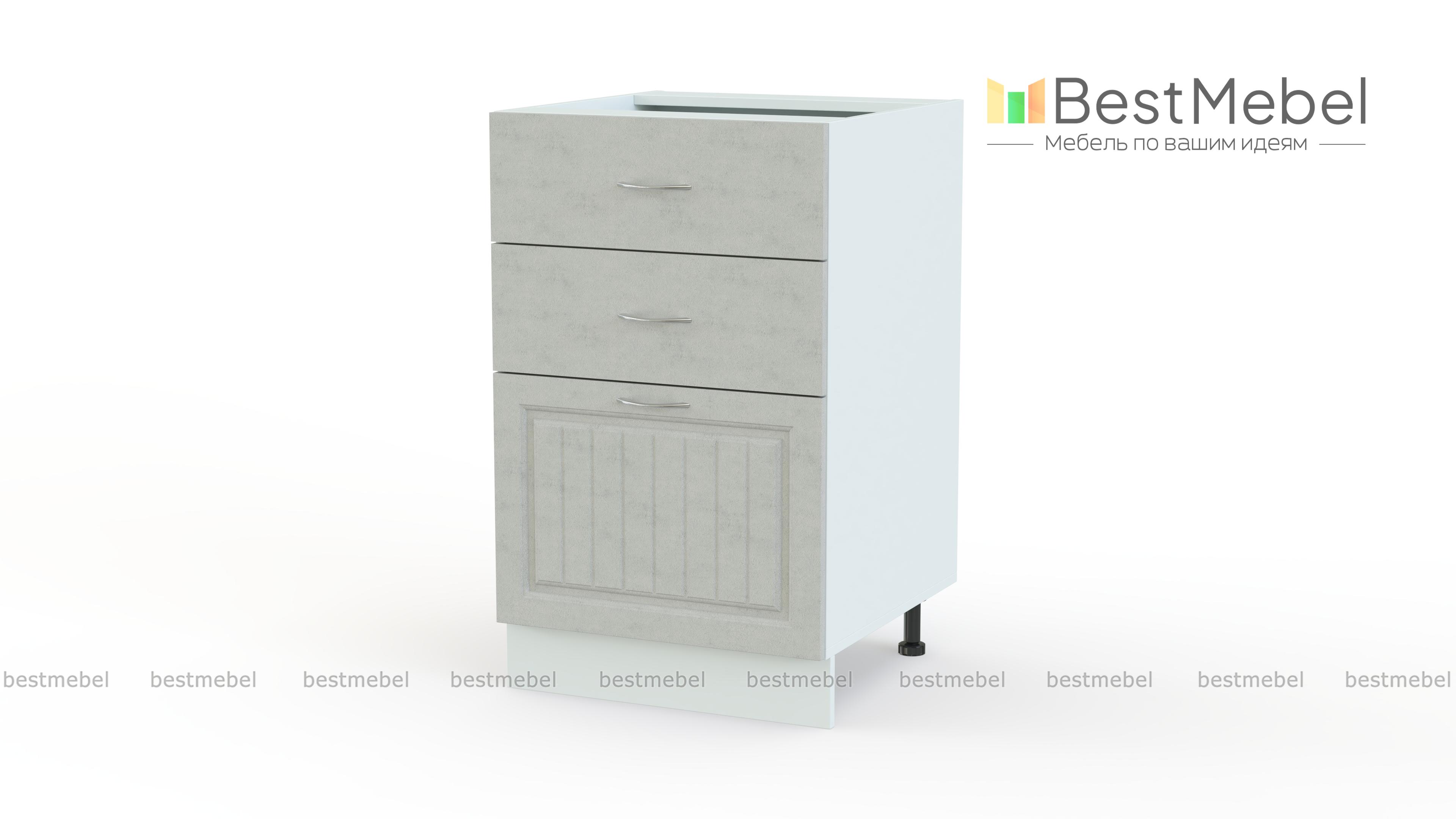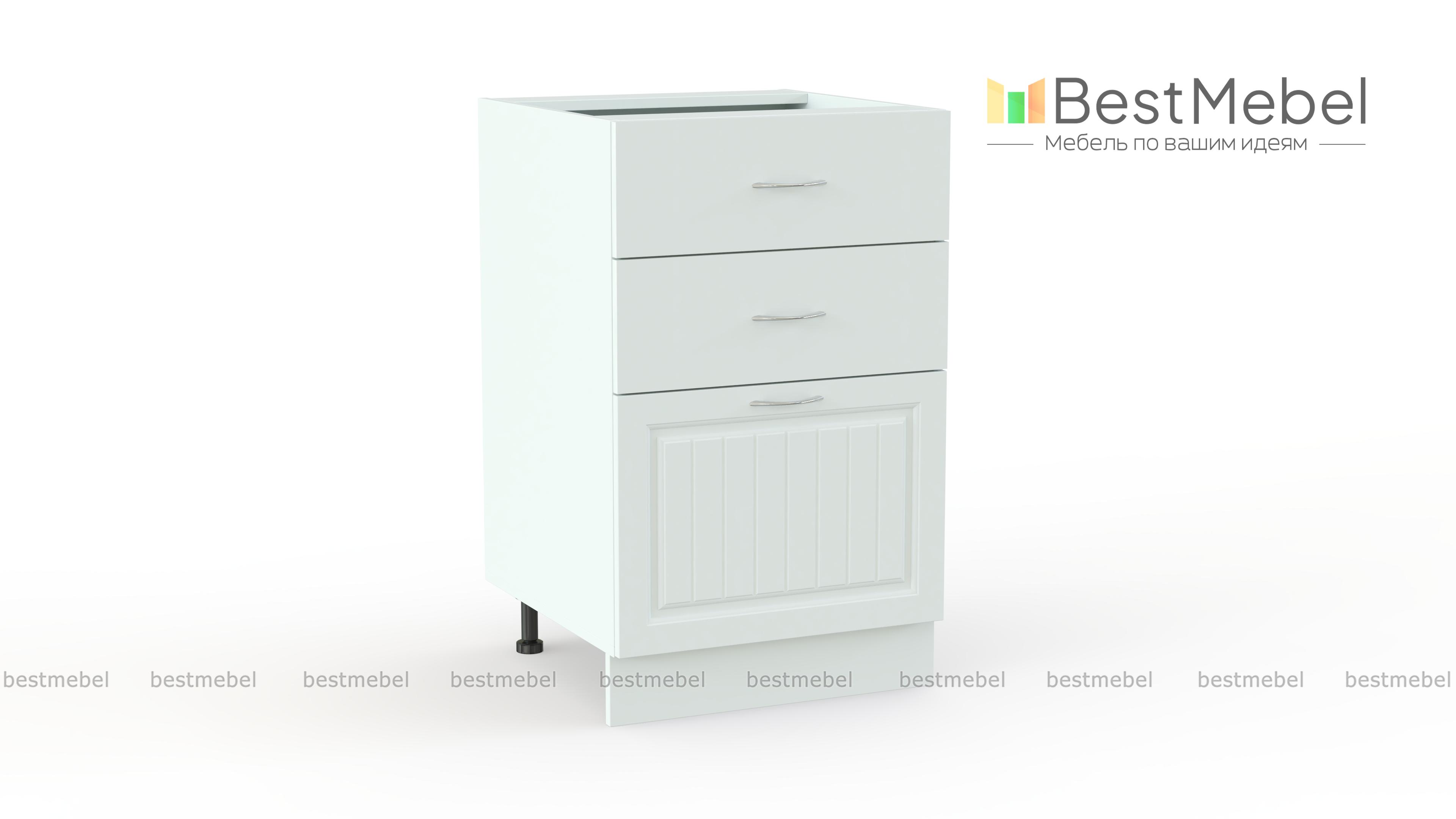 Тумба напольная Николь 3я BMS гармонично впишется в нижний ряд модулей популярного комплекта для кухни в стиле кантри. Три выдвижных ящика – два малых и один большой, оптимальны для хранения столовых приборов и разнообразных кухонных мелочей. Разместив все необходимое в одном месте, вам не придется тратить время на поиски нужной вещи. Фрезерованные фасады отличаются устойчивость к влаге, механическим повреждениям и надолго сохранят эстетичный вид. Купить тумбу напольную Николь 3я BMS и сделать готовку удобнее вам поможет наш интернет-магазин.