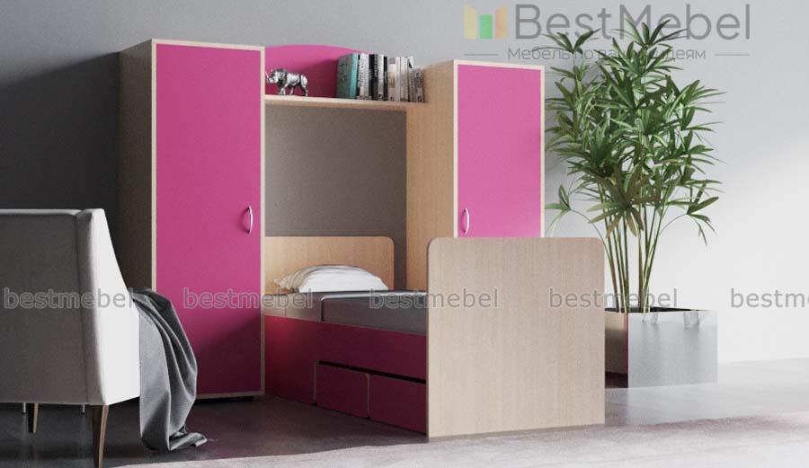 Детская кровать Миф 27 BMS – это простая и функциональная композиция для небольшой комнаты. Комплект включает в себя два симметрично расположенных пенала, оборудованных полками и штангой для одежды, кровать с парой выдвижных ящиков для постельных принадлежностей или игрушек в основании и межсекционную книжную полку. Лаконичный дизайн и разнообразие цветовых решений делают модель универсальной. Купить детскую кровать Миф 27 BMS вы всегда сможете в нашем интернет-магазине по доступной цене.