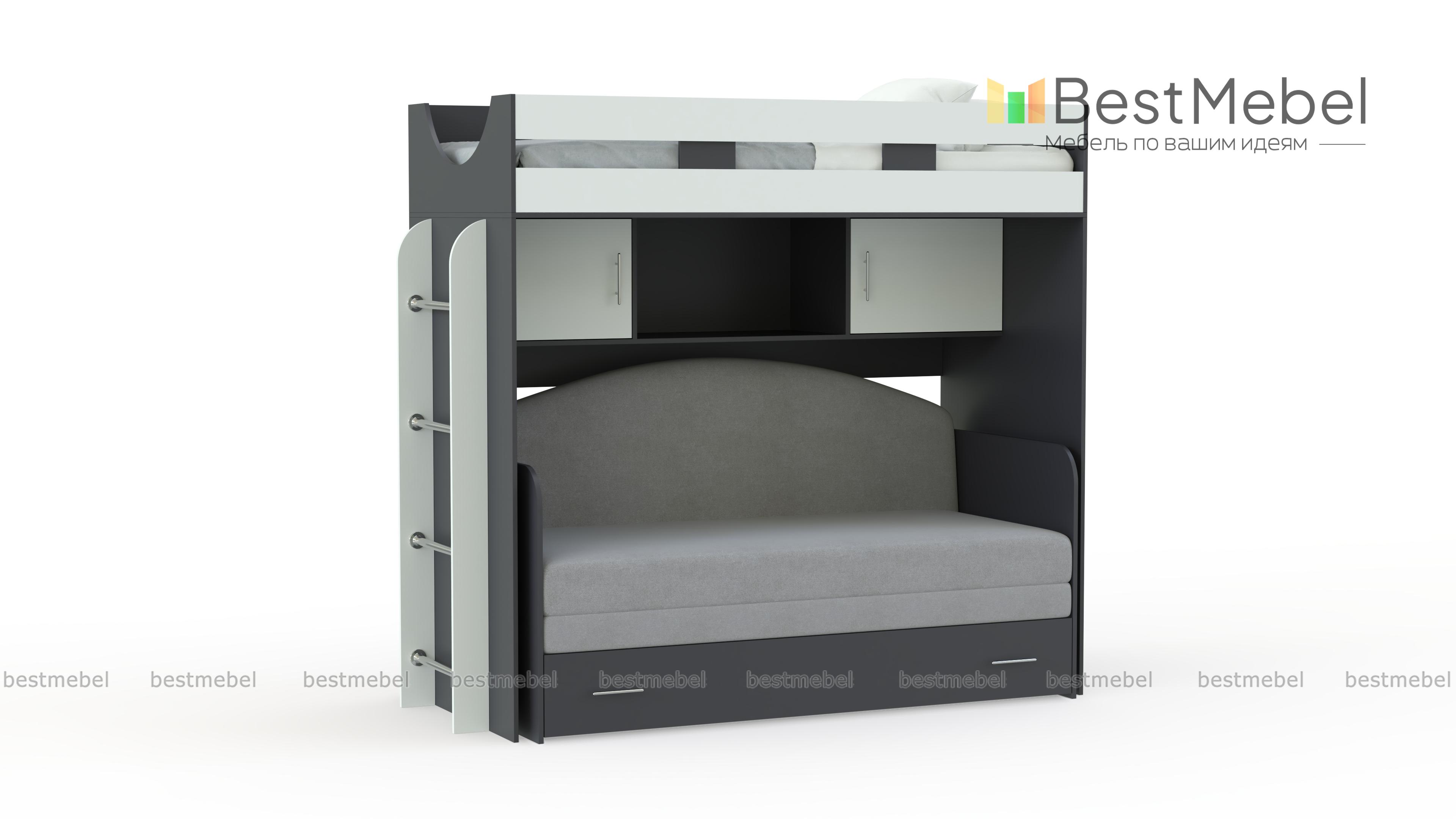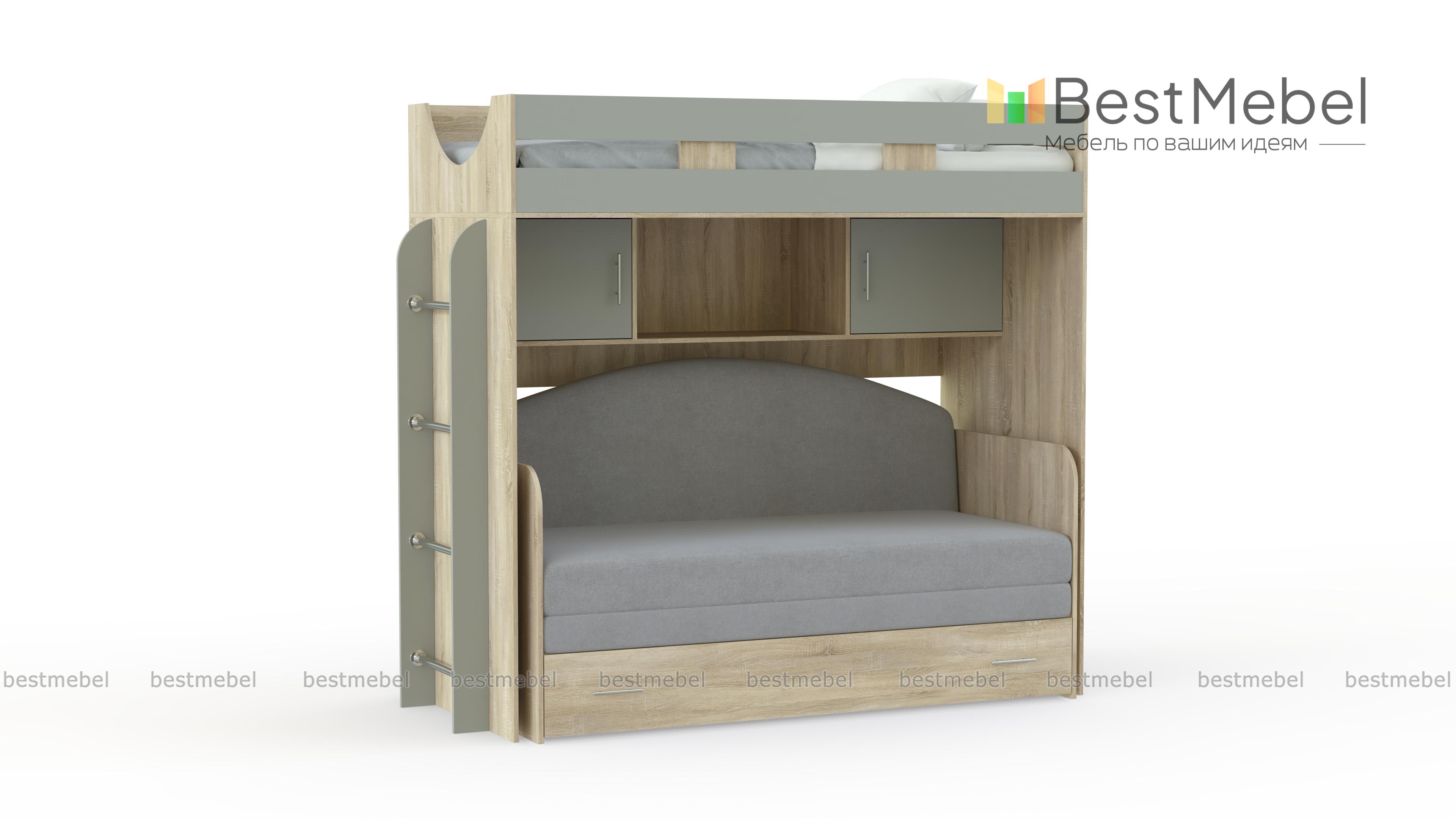 Кровать-чердак с диваном Пума 4 BMS станет отличным вариантом для организации пространства небольшой детской. Двухъярусная композиция, объединившая зону отдыха с удобной системой хранения, позволит сэкономить полезную площадь для игр. На втором ярусе располагается спальное место с бортиком, на первом – мини-диван и книжные полки, а с торца – вертикальная лестница с хромированными перекладинами. Купить кровать-чердак с диваном Пума 4 BMS вы сможете в нашем интернет-магазине, подобрав цветовое решение для комнаты мальчика или девочки.