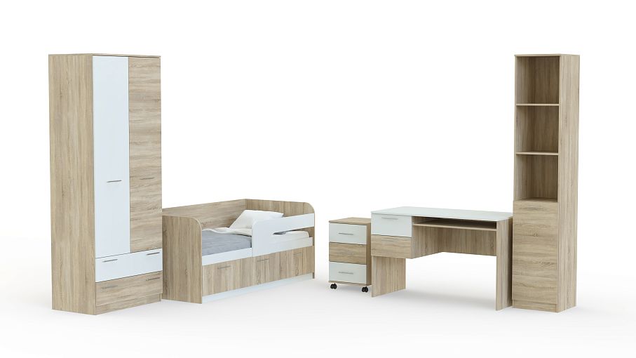 Мебель для детской комнаты Рико Модерн BMS поможет оборудовать светлую и комфортную комнату. Цветовое решение в светлых древесных тонах с нейтральными однотонными вставками оптимально для интерьера детской, а экологичные материалы просты в уходе и безопасны. В комплект входят двухдверный шкаф, кровать с бельевыми ящиками и защитными бортиками, практичная тумба на колесиках, компьютерный столик и высокий комбинированный стеллаж. Купить мебель для детской комнаты Рико Модерн BMS приглашаем в наш интернет-магазин.