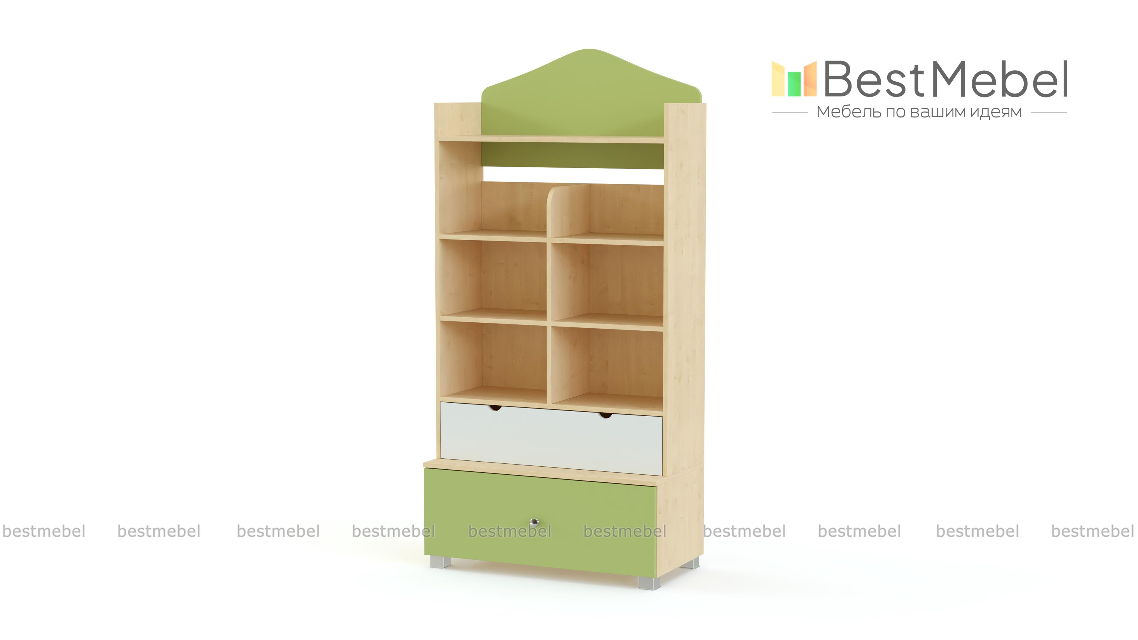 Стеллаж F-1 BMS изготовлен с учетом роста ребенка, позволяя малышам самостоятельно брать книги, игрушки и одежду. В нижней части широкого стеллажа располагаются вместительные выдвижные ящики, оснащенные удобными ручками – круглой и двумя вырезными, а в верхней – открытые полки, разделенные перегородкой. Боковины и декоративный элемент в верхней части безопасно скруглены. Купить стеллаж F-1 BMS вы сможете в нашем интернет-магазине, подобрав нужные размеры и цвет по каталогу.