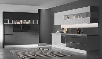 Прямые серо-белые кухни в Москве