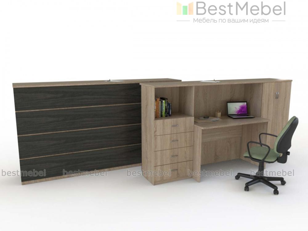 Ресепшен Верта № 3д BMS выполнен в светлых древесных тонах и декорирован по фасаду широкими планками контрастного цвета. Модель включает в себя все самое необходимое комфортной зоне ресепшен – широкую столешницу для посетителей, стол администратора и две тумбы – распашную просторными полками и оборудованную четырьмя выдвижными ящиками и нишей под документы. Купить ресепшен Верта № 3д BMS по доступной цене приглашаем к нам в интернет-магазин.
