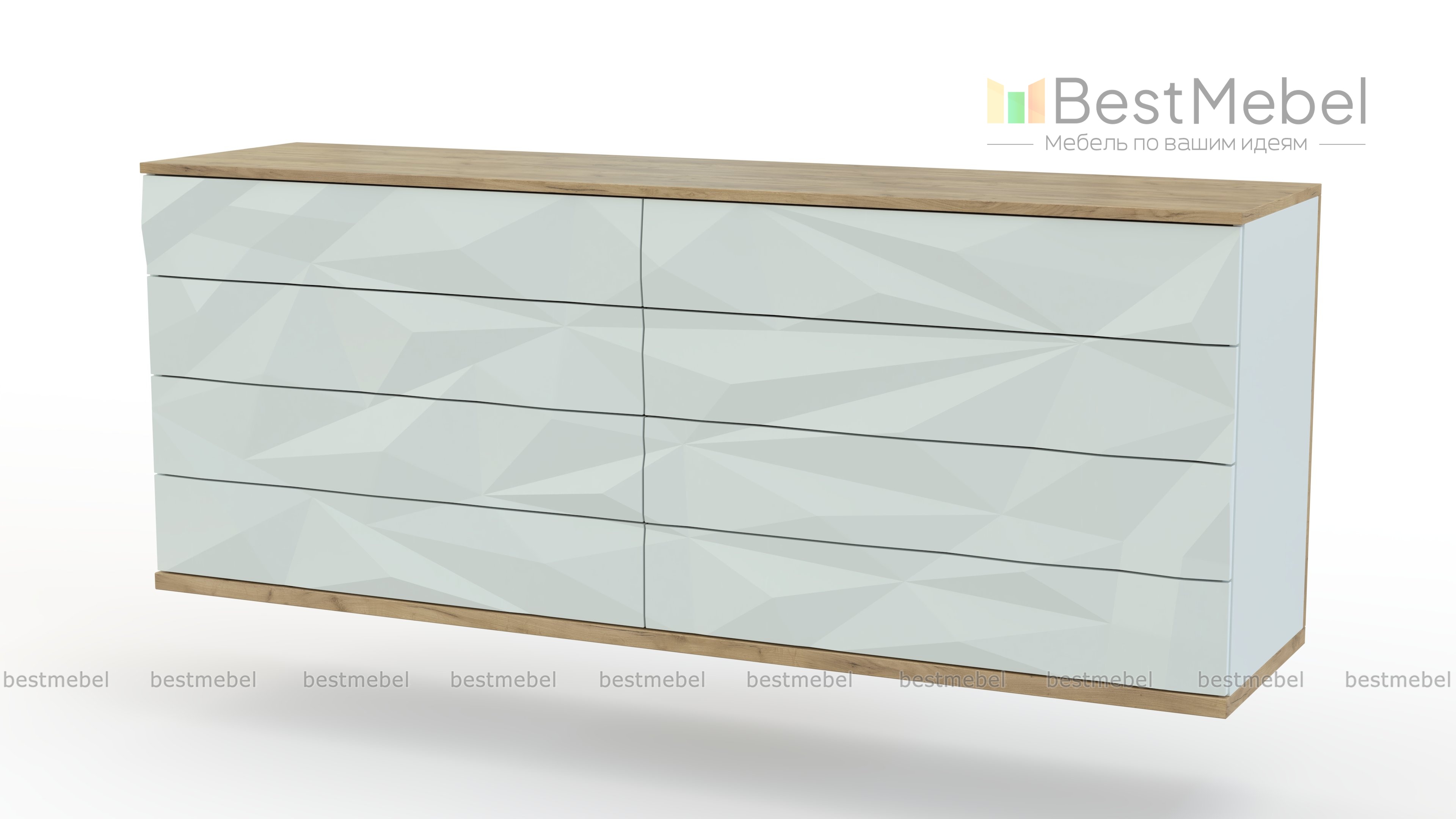 Комод Элизабет 11 BMS с основанием и верхней панелью под массив дерева выполнен в стиле минимализма. Восемь вместительных ящиков, украшенных фрезеровкой, расположились в два ряда для максимально удобного хранения ваших вещей. Если же вам требуется эффектно расположить декор, оформить пространство с телевизионной панелью или макияжную зону – визуально невесомый комод справится и с этой задачей. Купить комод Элизабет 11 BMS приглашаем в наш интернет-магазин с возможностью выбора цвета и габаритов.