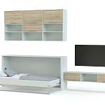 Шкаф-кровать трансформер Детская 1 BMS поможет сэкономить пространство и обустроить комфортную зону отдыха в небольших и узких комнатах. Композиция включает в себя шкаф-трансформер, за горизонтальной откидной дверцей которого скрывается полноценное спальное место, и навесную секцию с глухими и открытыми полками для книг и игрушек. Выполненный в нейтральной гамме, комплект легко впишется в современные интерьеры и создаст уютную атмосферу. Купить шкаф-кровать трансформер Детская 1 BMS по доступной цене приглашаем к нам в интернет-магазин.