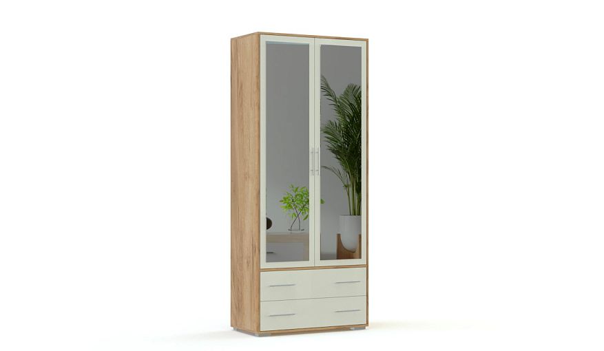 Распашной шкаф Эстер 7 BMS – оригинальное дизайнерское решение для интерьеров помещений современного стиля. Уникальность модели обусловлена нежным и легким сочетанием белоснежных оттенков и древесного корпуса, а практичность – платяным отсеком со штангой для удобного размещения предметов гардероба и двумя просторными выдвижными ящиками. Прямоугольные зеркала визуально увеличат пространство вашей спальни или гостиной и помогут внести последний штрих в выбранный имидж или нанести макияж. Купить распашной шкаф Эстер 7 BMS вы можете на сайте нашего интернет-магазина.