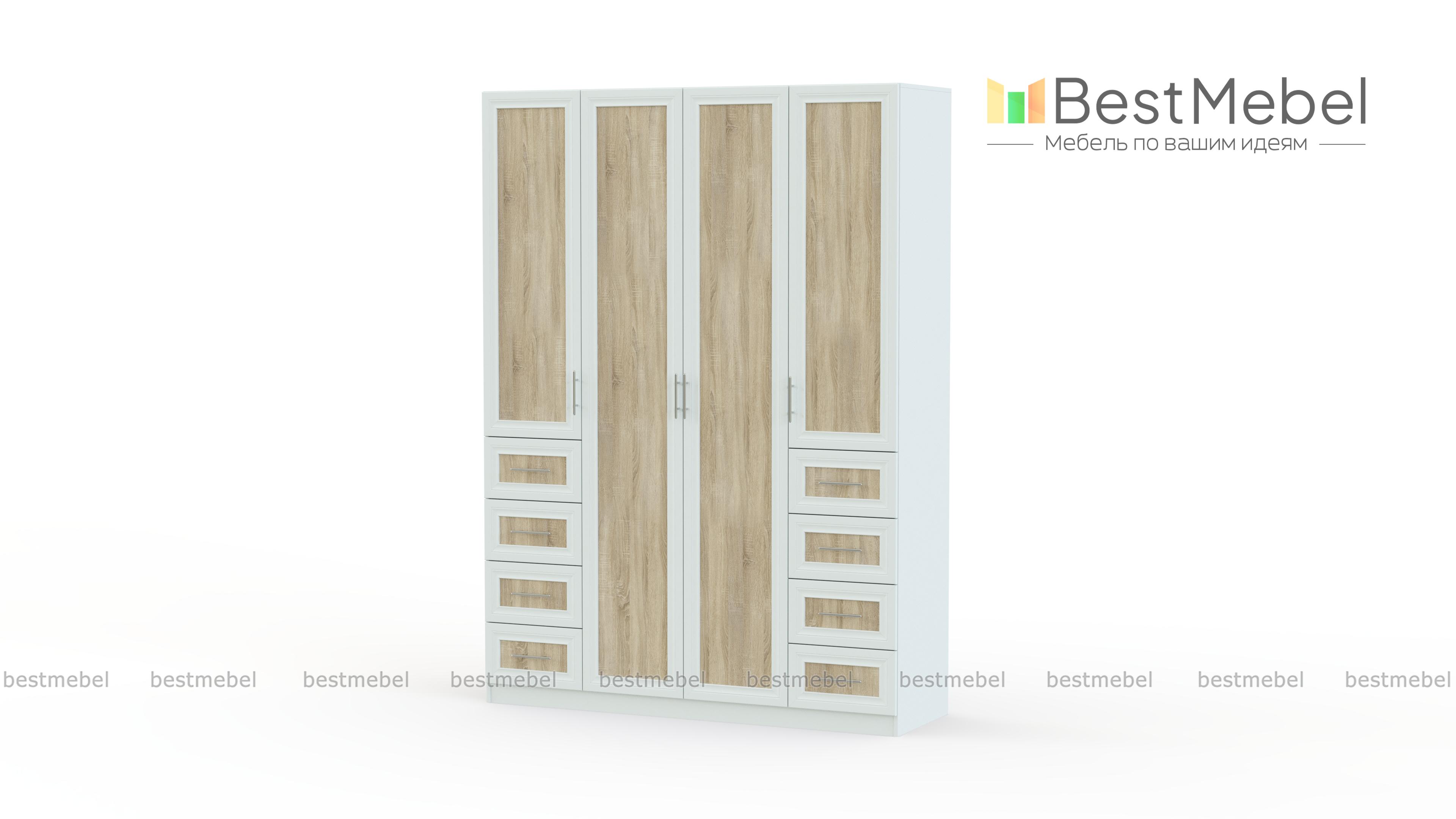 Распашной шкаф Крона 20 BMS – крупногабаритная модель из популярной серии, которую отличает надежность и гармоничное сочетание современных и классических тенденций. Вместительный шкаф с рамочными фасадами выполнен в контрастных оттенках нейтральной гаммы и идеально подходит для домашнего интерьера. Внутреннее наполнение из просторного платяного отделения со штангой и двух бельевых секций дополнено двумя рядами выдвижных ящиков для мелочей. Купить распашной шкаф Крона 20 BMS вы сможете в нашем интернет-магазине, подобрав нужные параметры.