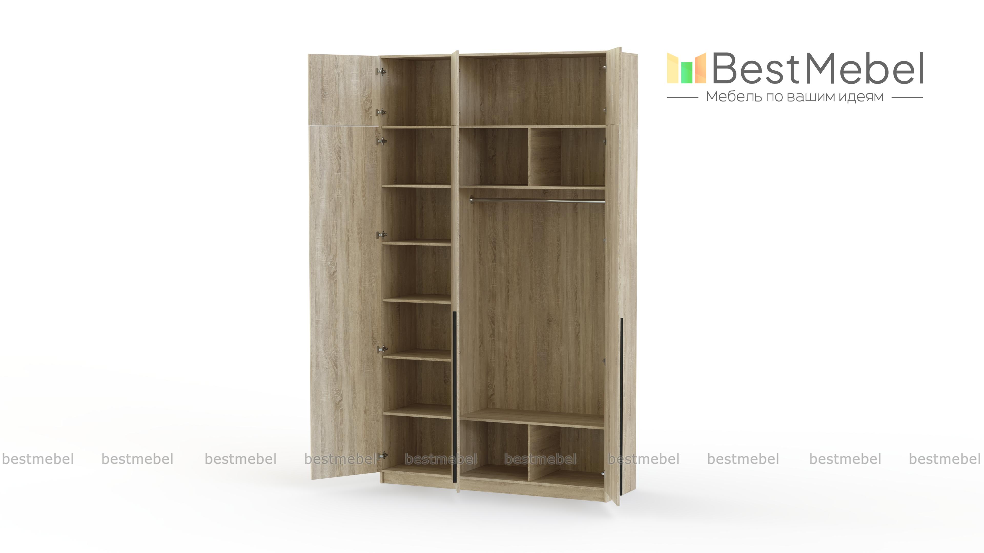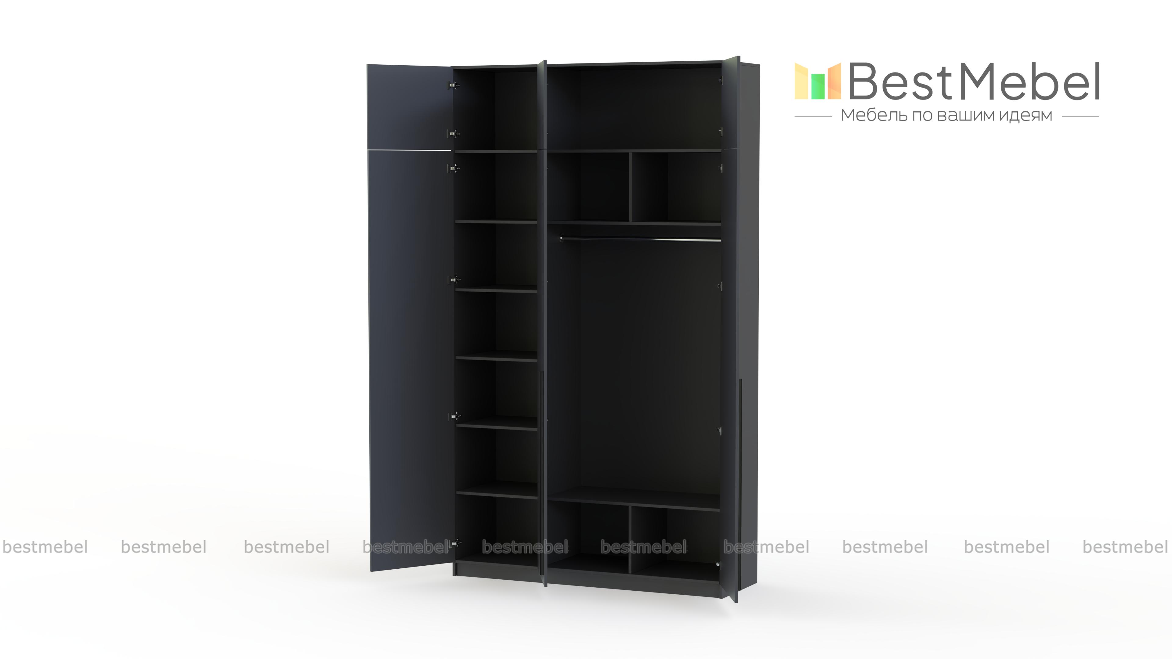 Шкаф распашной Айва 19 BMS с антресолью максимально эффективно использует пространство — от пола до потолка. Для вашего повседневного гардероба и редко используемых вещей предусмотрены просторные полки на разной высоте и платяная штанга. Сплошной фасад выполнен в классическом светлом оттенке, на дверцы установлены удлиненные контрастные ручки. Купить шкаф распашной Айва 19 BMS с изготовлением по индивидуальным размерам вы сможете на сайте нашего интернет-магазина.