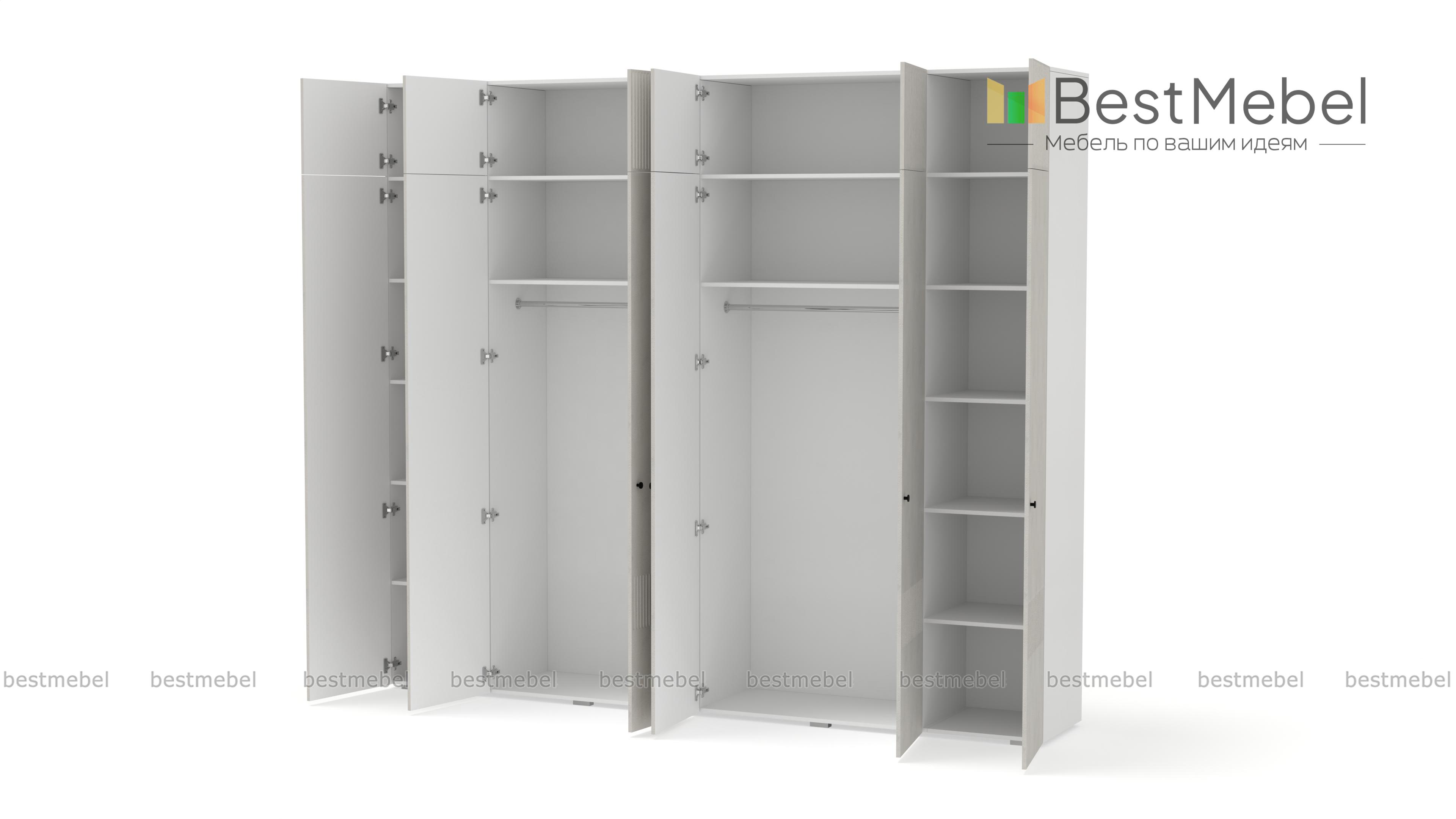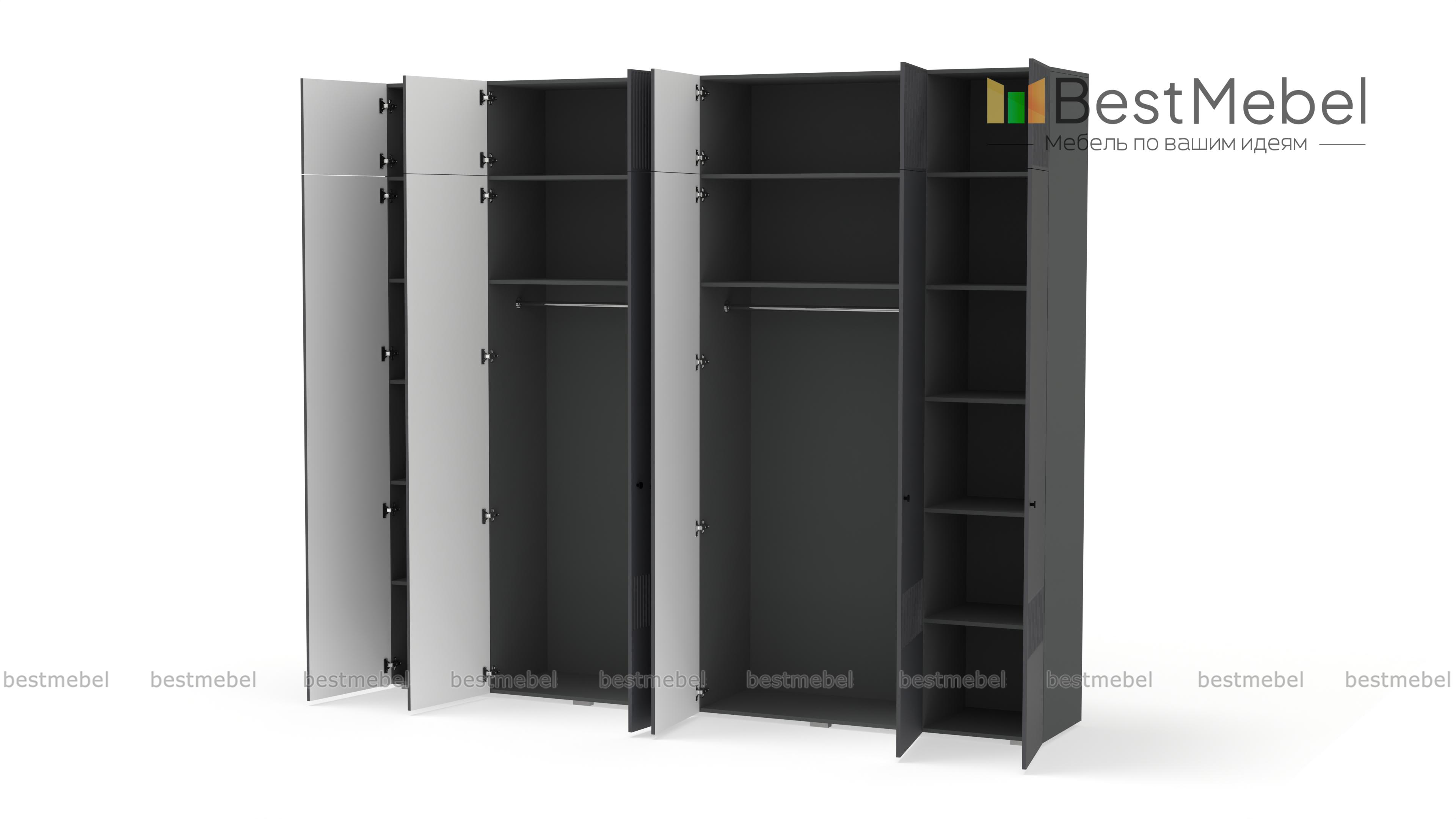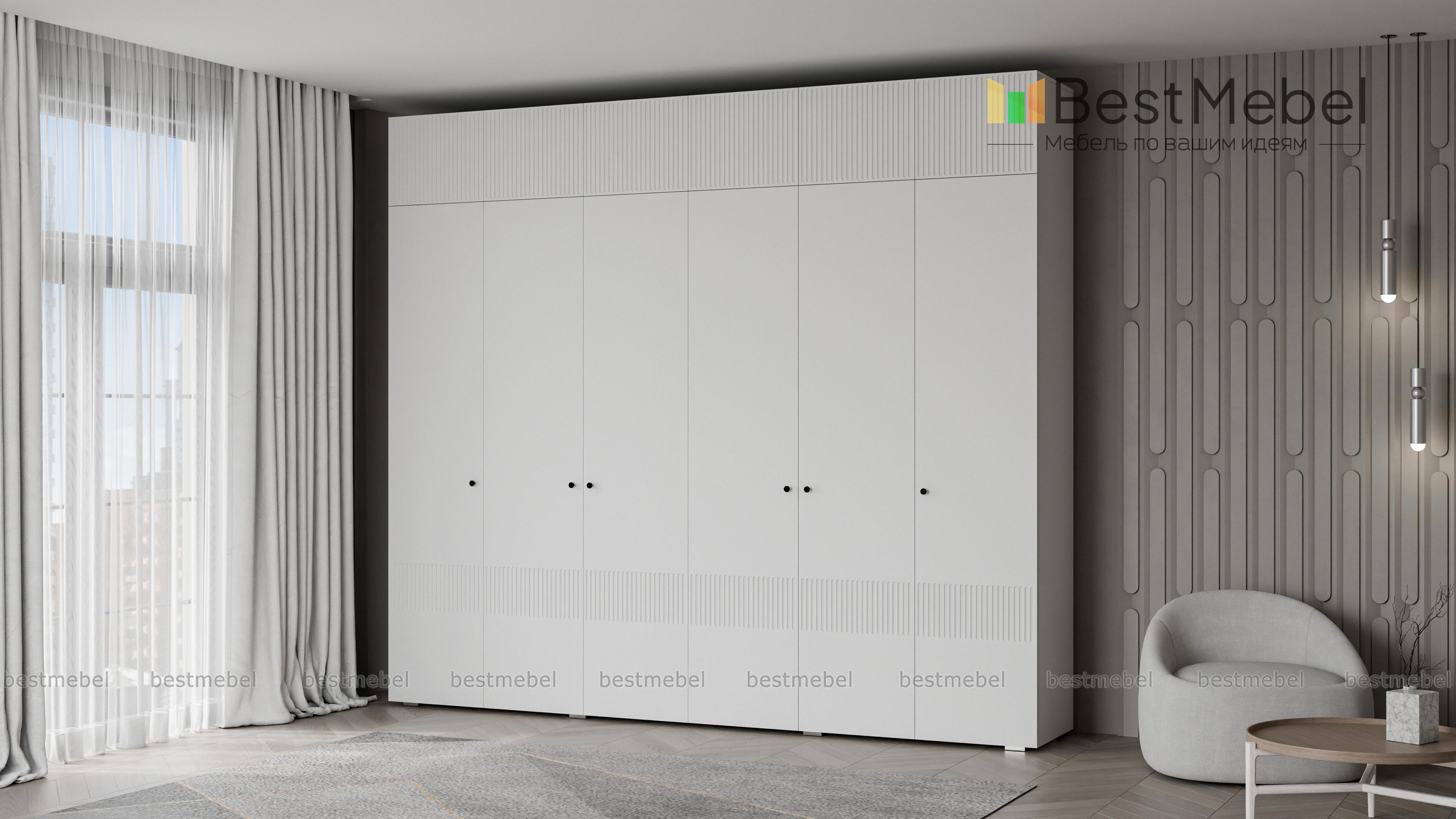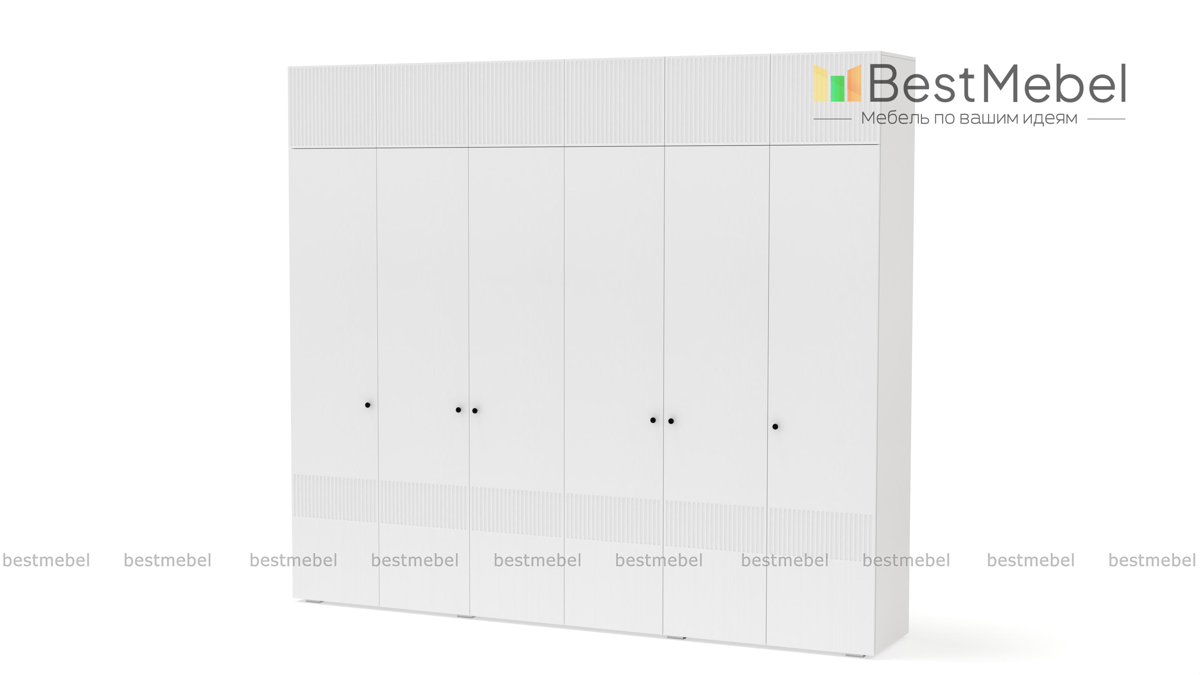 Шкаф распашной Джосс 12 BMS сохранит в порядке гардероб семьи. Шестидверная конструкция с двумя платяными отделениями, расположенными в центре, двумя бельевыми и вместительной антресолью оптимально подходит для хранения одежды и обуви двух человек. Выполненный в комфортной гамме, шкаф имеет стильную рельефную отделку по фасаду. Купить шкаф распашной Джосс 12 BMS вы сможете на сайте нашего интернет-магазина, подобрав нужные размеры, цвет и компоновку.