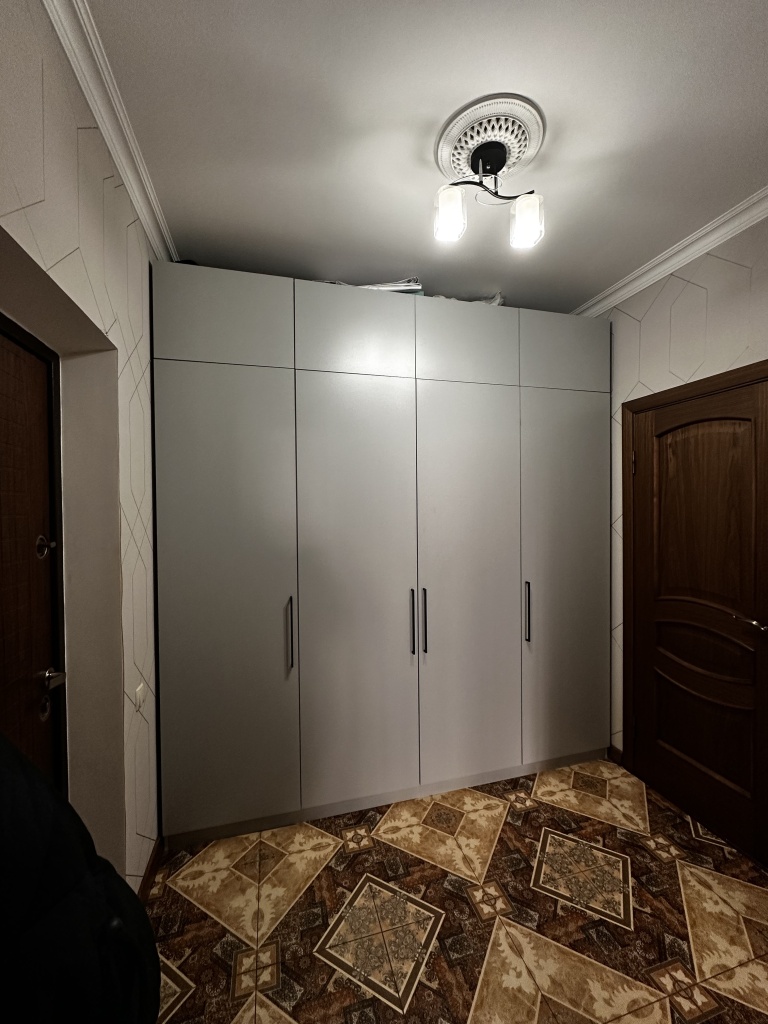 Заказ 00000275042, шкаф распашной Остин Лайт 6 BMS (1700х2500х500). Это не первый мой шкаф с БестМебель. Классно, что можно придумать свое наполнение, очень удобно. В целом качество нормальное, кое-где есть микро сколы, но их видно только при ближайшем рассмотрении, но не при ежедневном использовании. Фурнитура приемлемая, только на верхних полках мы просили не устанавливать пуш-ту-опен механизм, иначе дверцы немного оттопыриваются. Но поскольку туда убраны редко используемые вещи, это не проблема. Так что могу рекомендовать, особенно если требуется какое-то нестандартное исполнение.