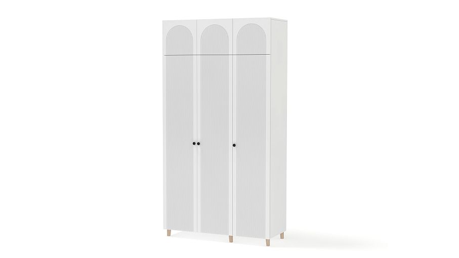 Шкаф распашной Рене 25 BMS сделает хранение в спальне, детской или прихожей удобным и эстетичным. Все предметы гардероба и постельные принадлежности будут скрыты за изящным фасадом с арочными вырезами и рельефом. Корпус и фасад выполнены из ламинированной ДСП и МДФ светлого оттенка, а дополнительную легкость высокому трехдверному шкафу с антресолью придают деревянные ножки. Купить шкаф распашной Рене 25 BMS вы всегда сможете в нашем интернет-магазине, по желанию изменив цвет и размеры.