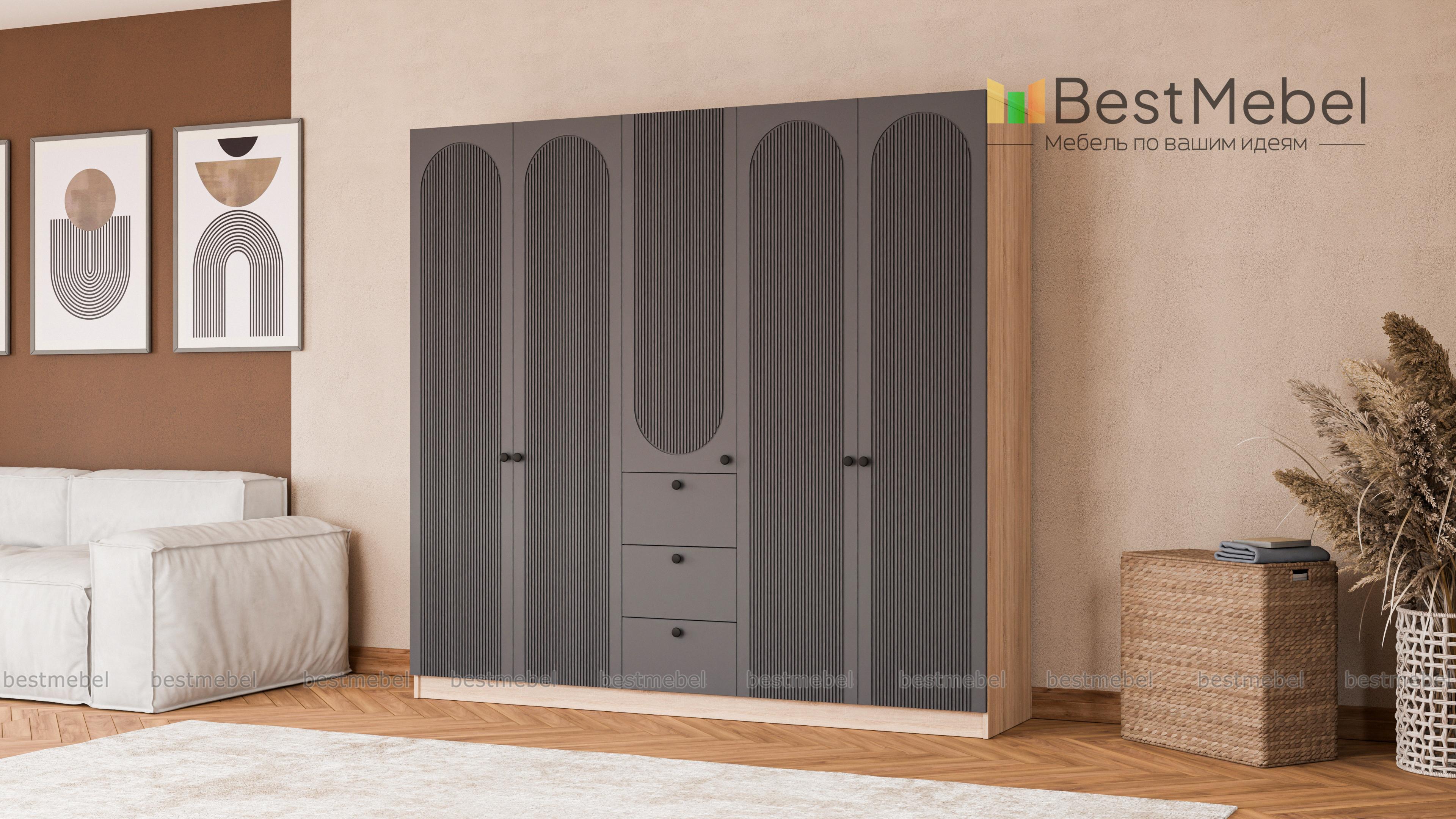 Шкаф распашной Рене 30 BMS поможет вам организовать хранение в спальне, просторной прихожей или детской. Двухдверные платяные отделения разделены комбинированной секцией с тремя ящиками — для белья и мелкого трикотажа. Оригинальный рельеф на дверцах и трендовые оттенки корпуса и фасада создают выразительный дизайн в современной стилистике. Купить шкаф распашной Рене 30 BMS приглашаем в наш интернет-магазин в необходимом размере и любых оттенках из каталога.