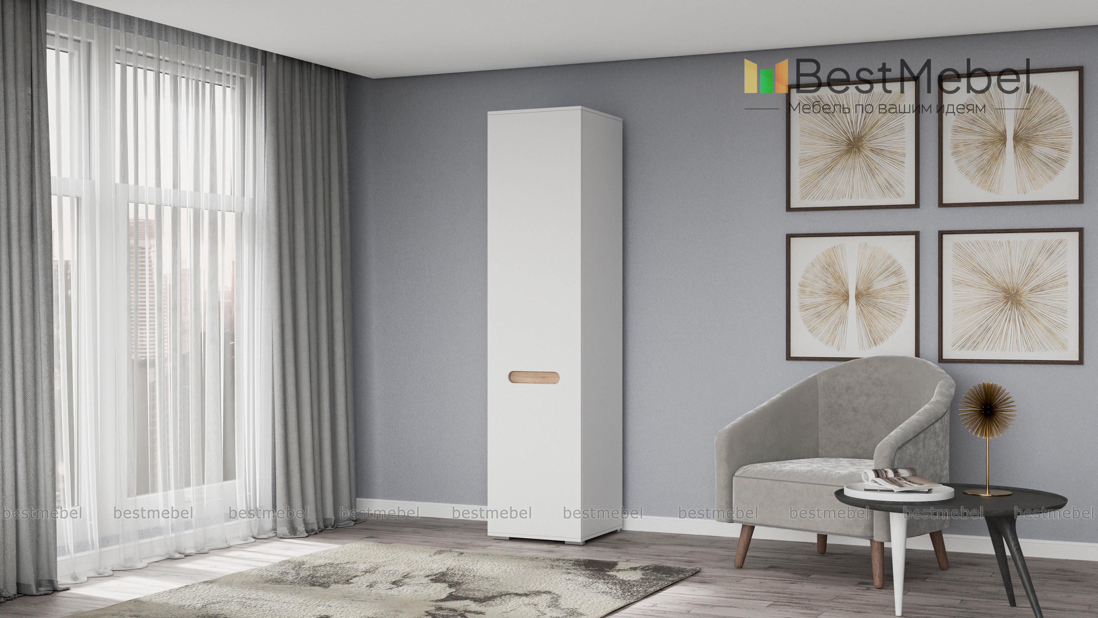 Шкаф Эдип 1 BMS – однодверная компактная модель для малогабаритных современных прихожих, гостиных и спален. Лаконичный шкаф, выполненный в стиле минимализм, отличается скругленными фасадами в эффектном и износостойком белом оттенке. Эргономичные ручки представляют собой вырезы с контрастной рельефной планкой в цвете Дуб Сонома. Внутреннее наполнение модели – полка и выдвижная штанга для вешалок с одеждой. Купить Шкаф Эдип 1 BMS вы сможете в нашем интернет-магазине по демократичной цене.
