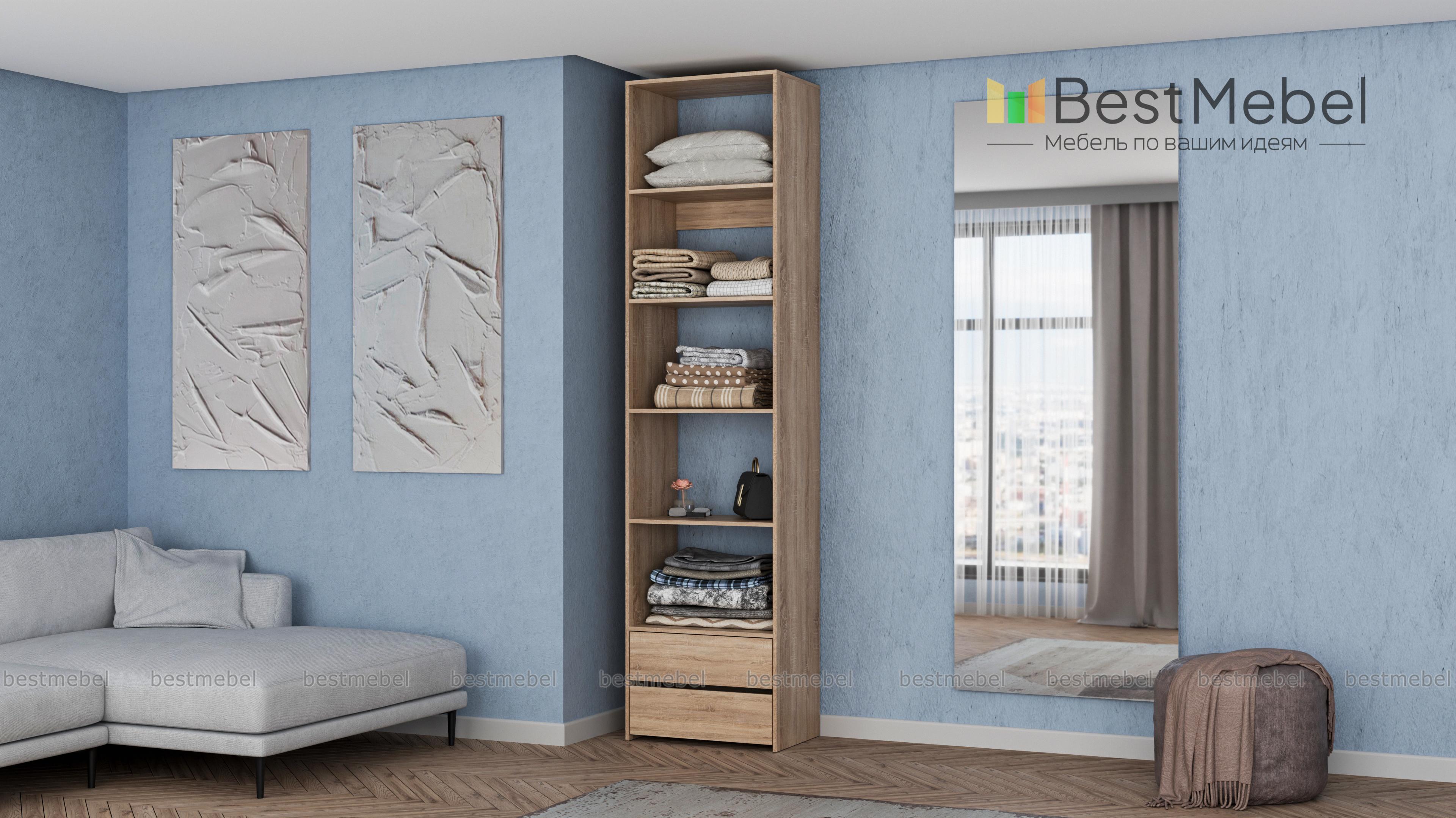 Стеллаж для одежды Мирта 36 BMS позволит вам сохранить порядок в доме. Благодаря компактным габаритам конструкция занимает минимум места, а дизайн сочетается с большинством современной мебели. Помимо стандартных открытых полок стеллаж укомплектован парой выдвижных ящиков в основании, что делает его удобным для хранения мелких вещей. Купить стеллаж для одежды Мирта 36 BMS, изготовленный по индивидуальным размерам, вы сможете на сайте нашего интернет-магазина.