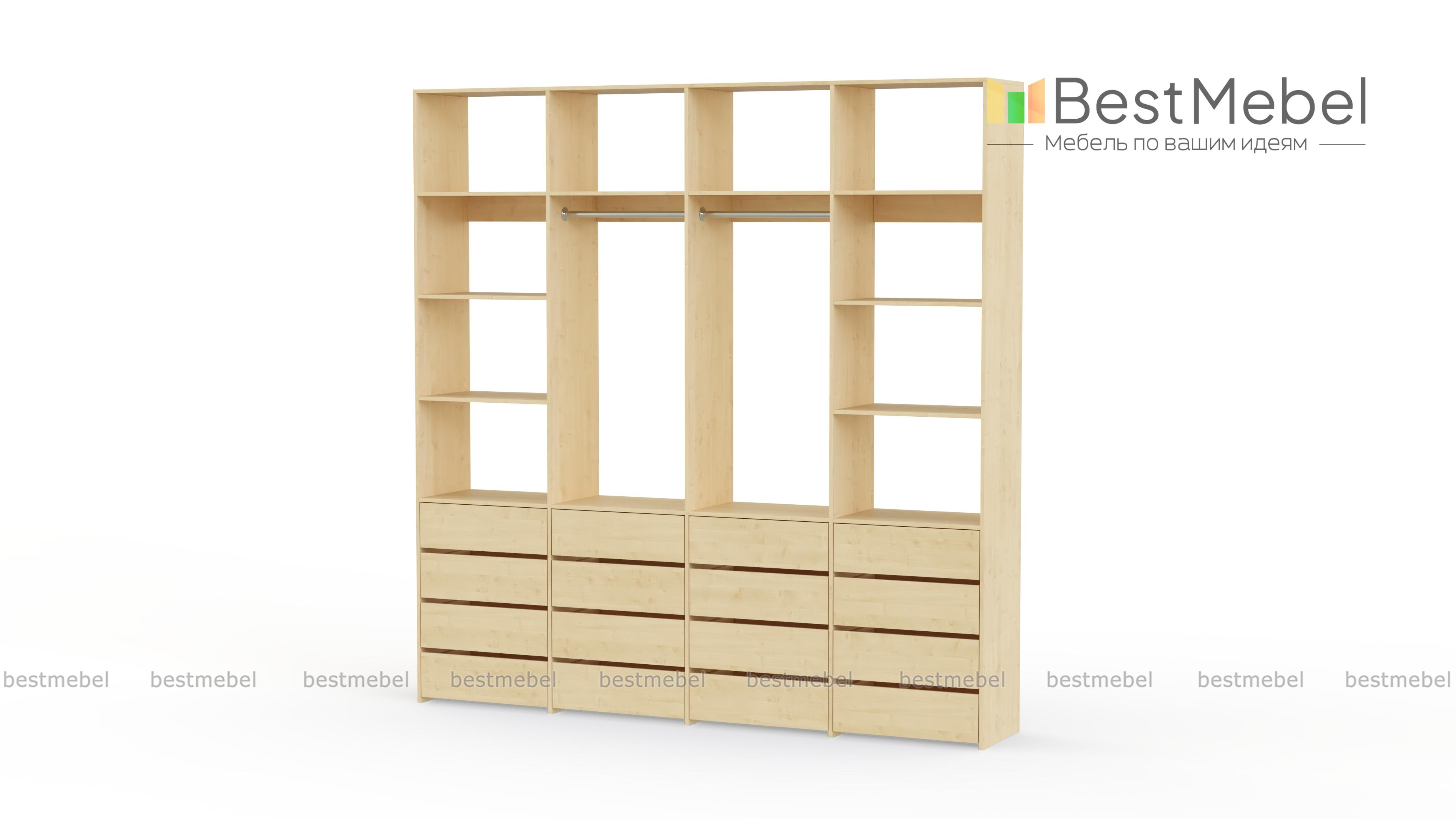 Стеллаж для одежды Мирта 63 BMS — это продуманная система хранения и функциональный современный дизайн. Две штанги и полки помогут разместить вешалки с одеждой, обувные коробки и текстиль, а четыре ряда выдвижных ящиков станут полноценной заменой бельевому комоду. Для изготовления стеллажа использована ламинированная ДСП высокого качества и надежная фурнитура. Купить стеллаж для одежды Мирта 63 BMS с выбором размера и цвета по каталогу приглашаем в наш интернет-магазин.
