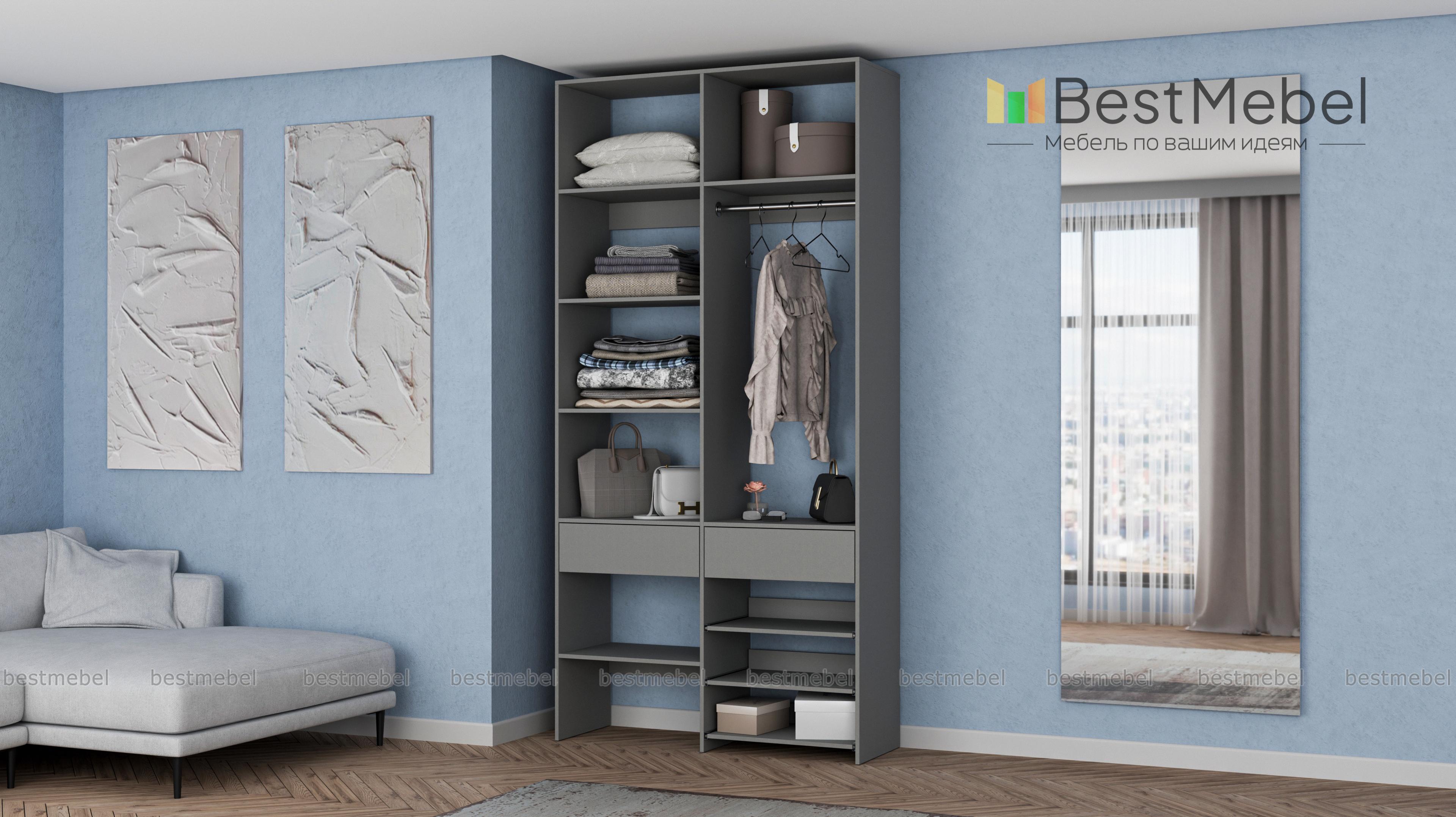 Стеллаж для одежды Мирта 81 BMS — компактная и вместительная система хранения в прихожую, спальню, гардеробную. Одежная штанга, два ящика под аксессуары и мелкий трикотаж, ряд бельевых полок и выдвижных панелей имеют эргономичное размещение. Благодаря простой форме и современному функциональному дизайну стеллаж легко комбинируется с другими предметами обстановки. Купить стеллаж для одежды Мирта 81 BMS приглашаем в наш интернет-магазин, подобрав цвет и размеры.