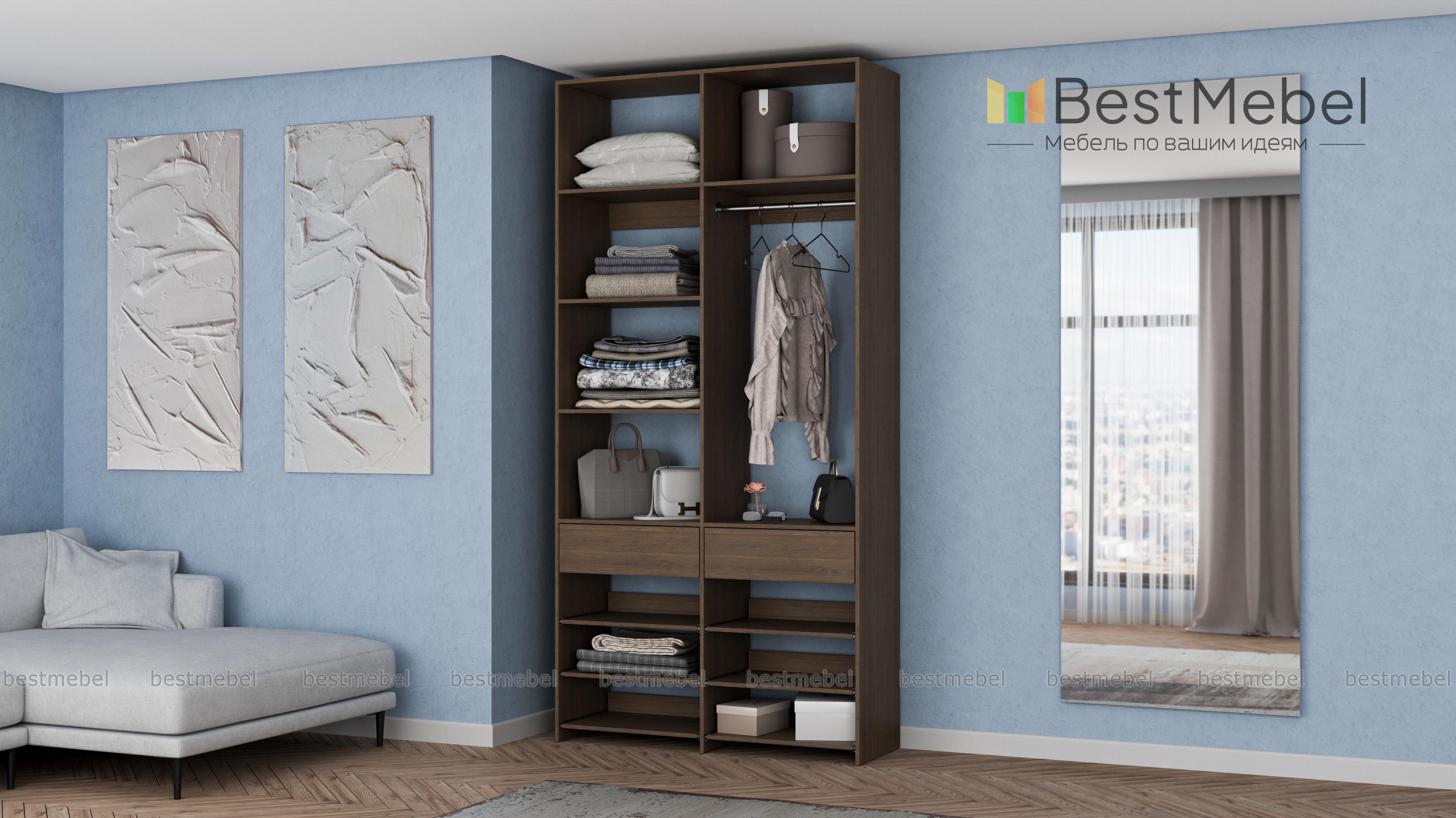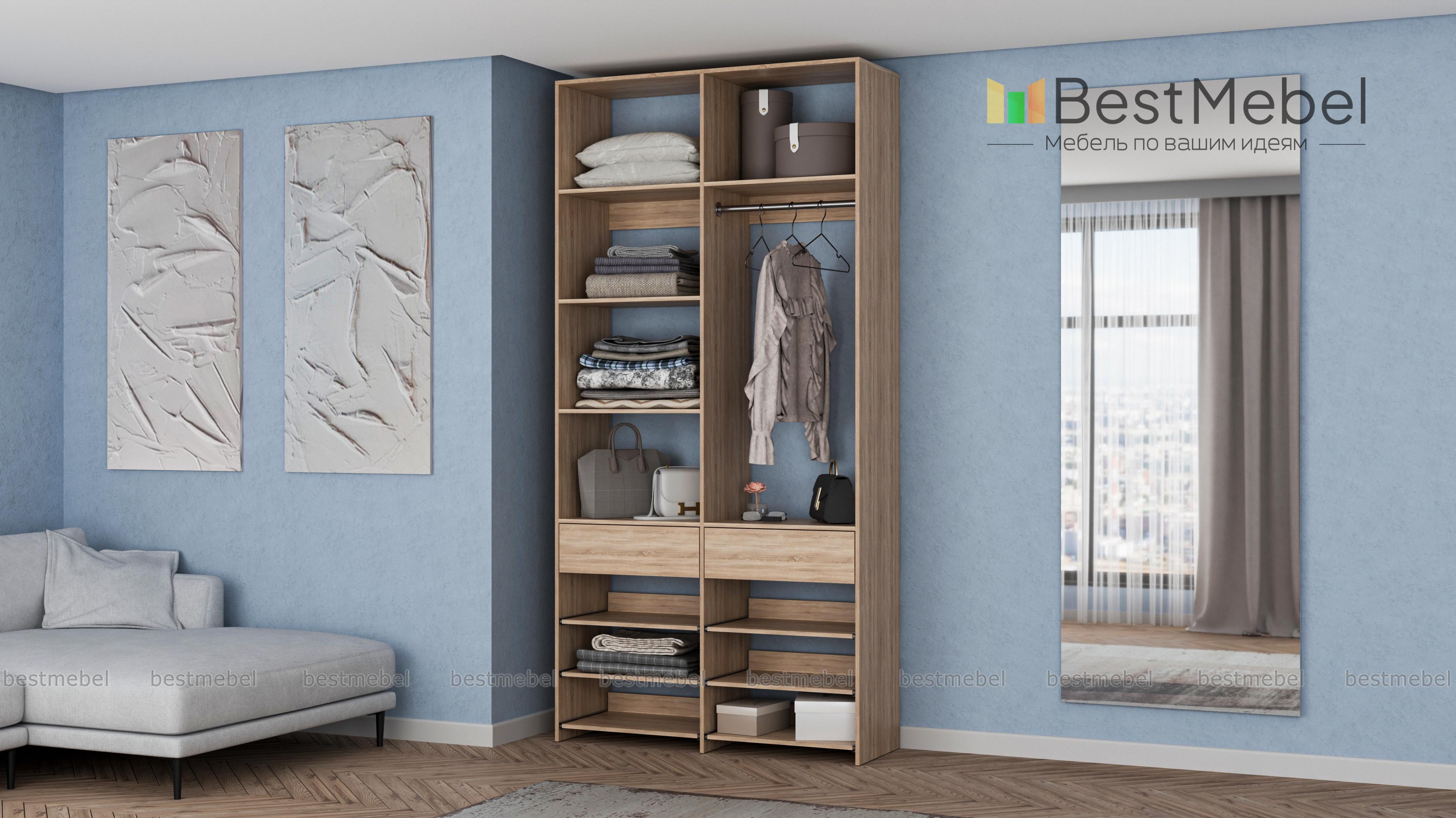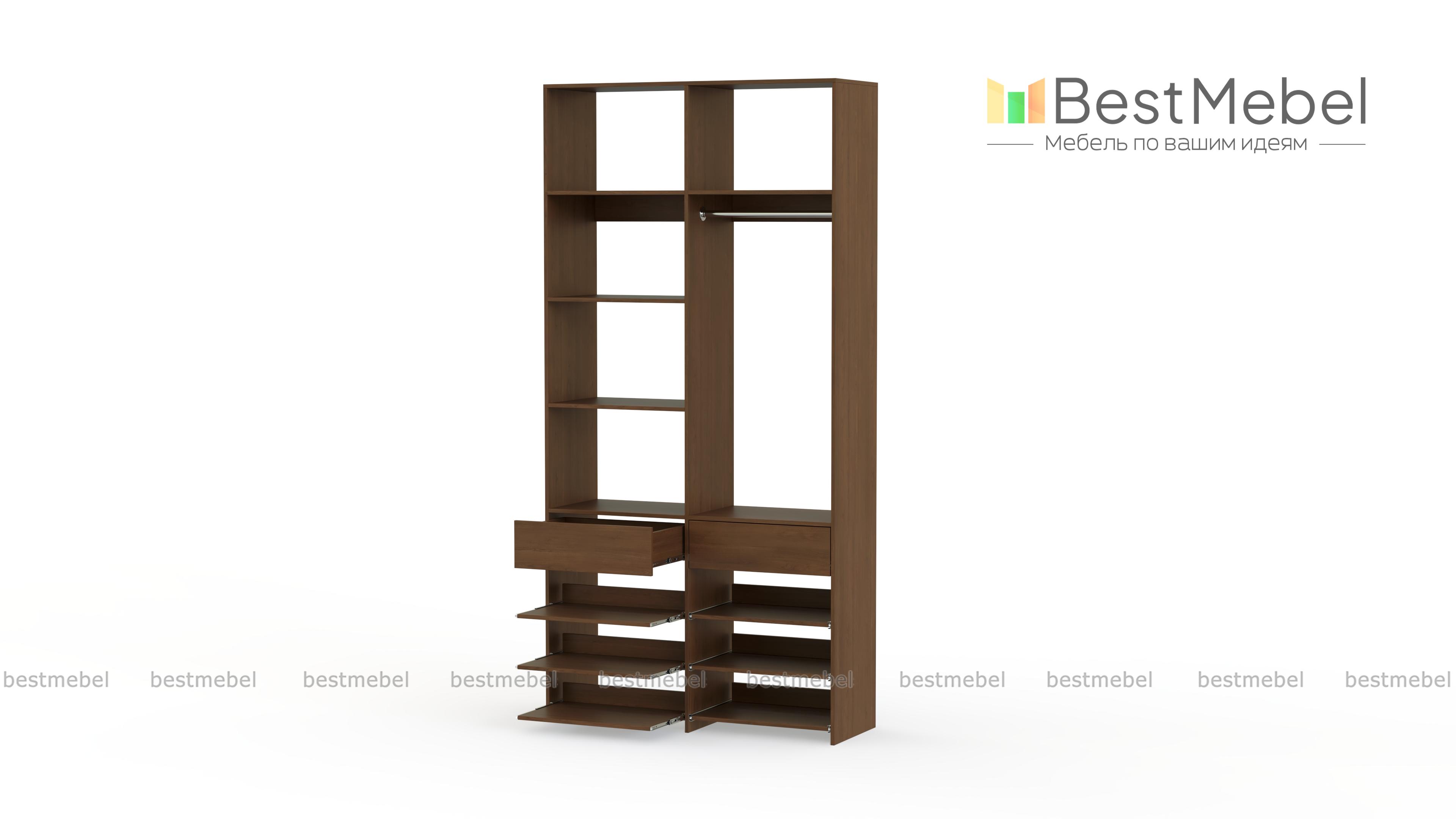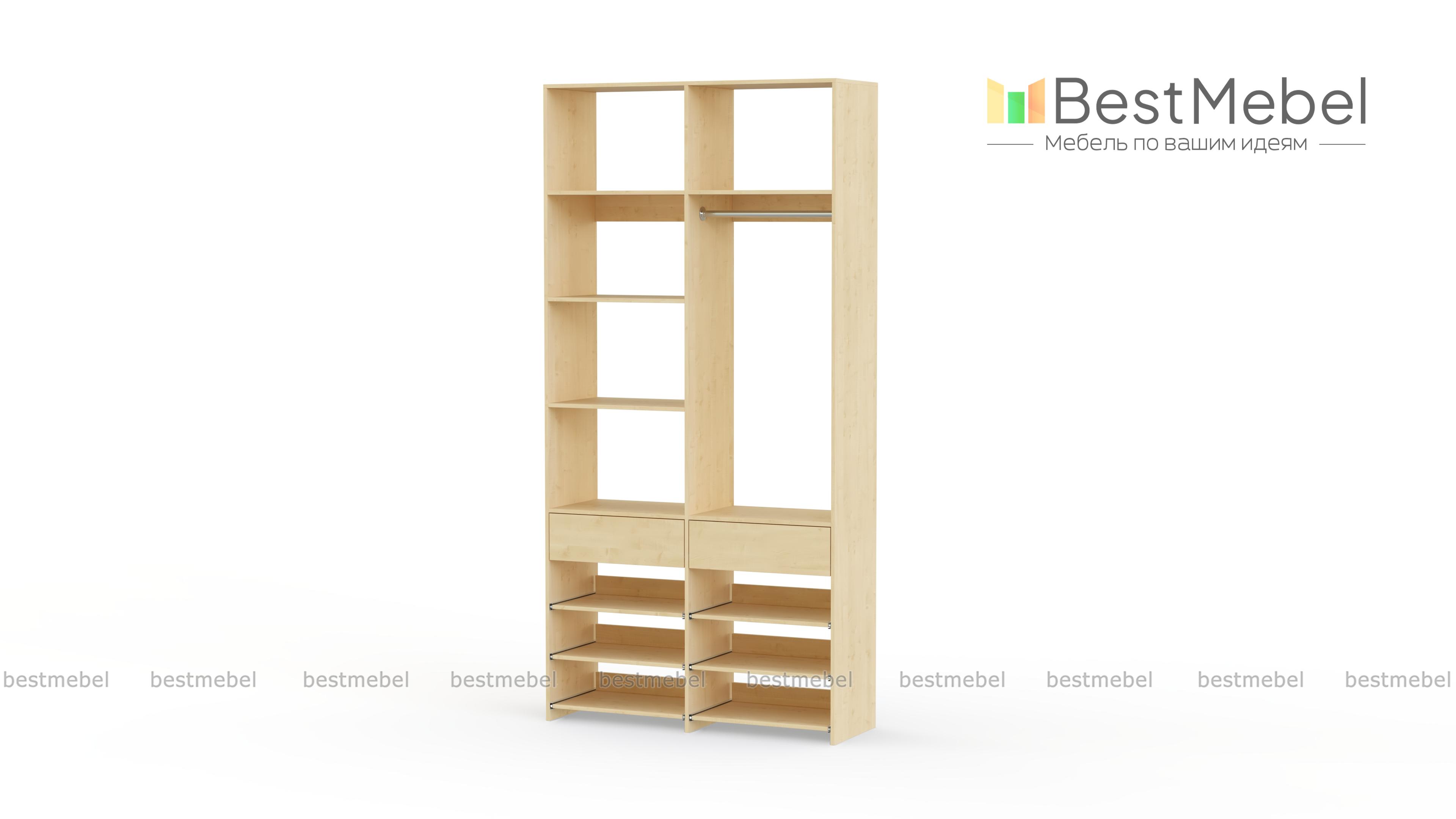 Стеллаж для одежды Мирта 82 BMS эффективно использует ограниченную площадь маленькой прихожей или гардеробной комнаты. В конфигурации со штангой, двумя ящиками, выдвижными и стационарными полками есть место для одежды, обуви и мелких аксессуаров. Ламинированное покрытие стеллажа устойчиво к влаге и появлению царапин, легко моется и эстетично выглядит. Купить стеллаж для одежды Мирта 82 BMS в оттенках нашего каталога и любом удобном размере вы сможете на сайте интернет-магазина.