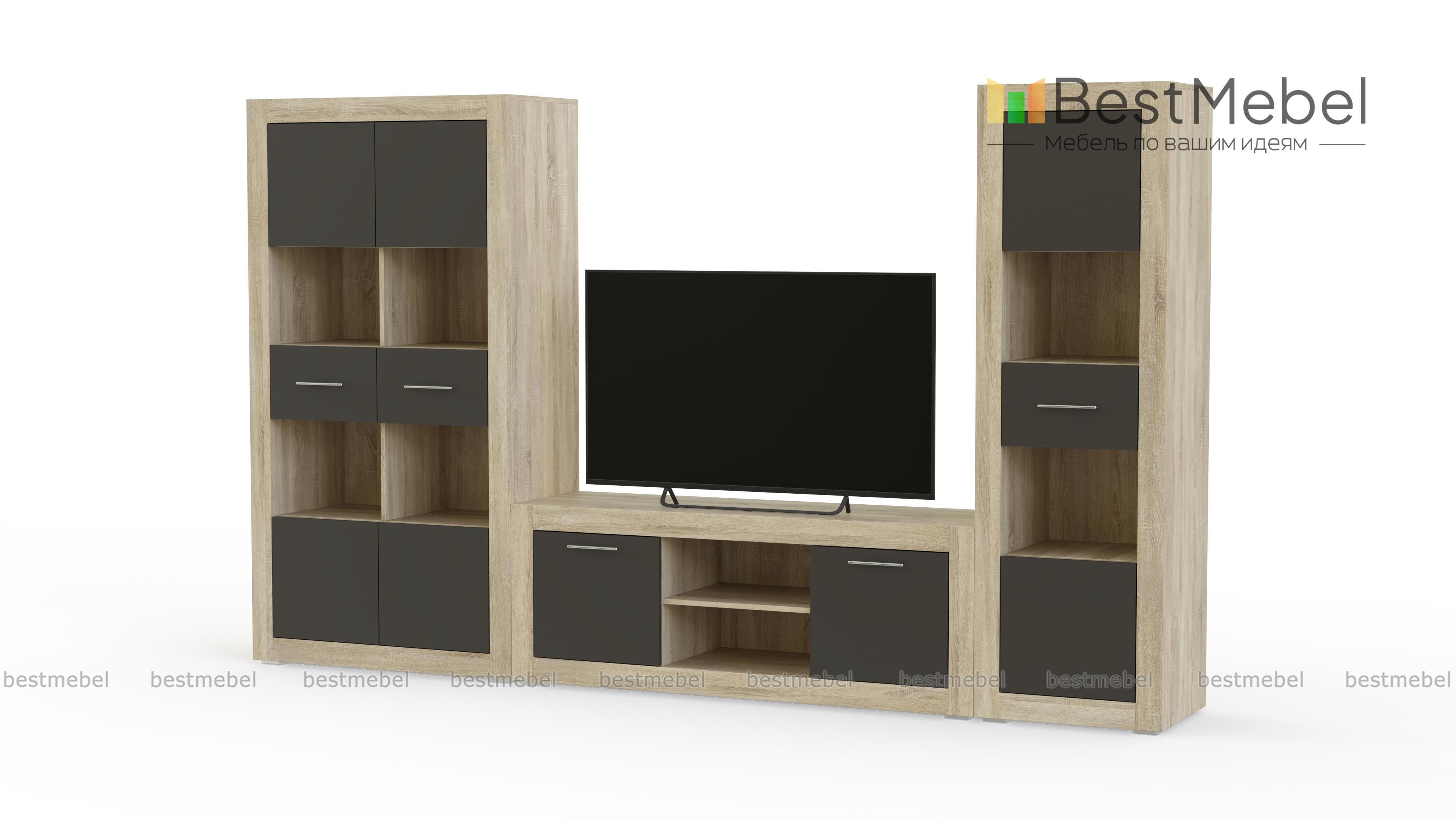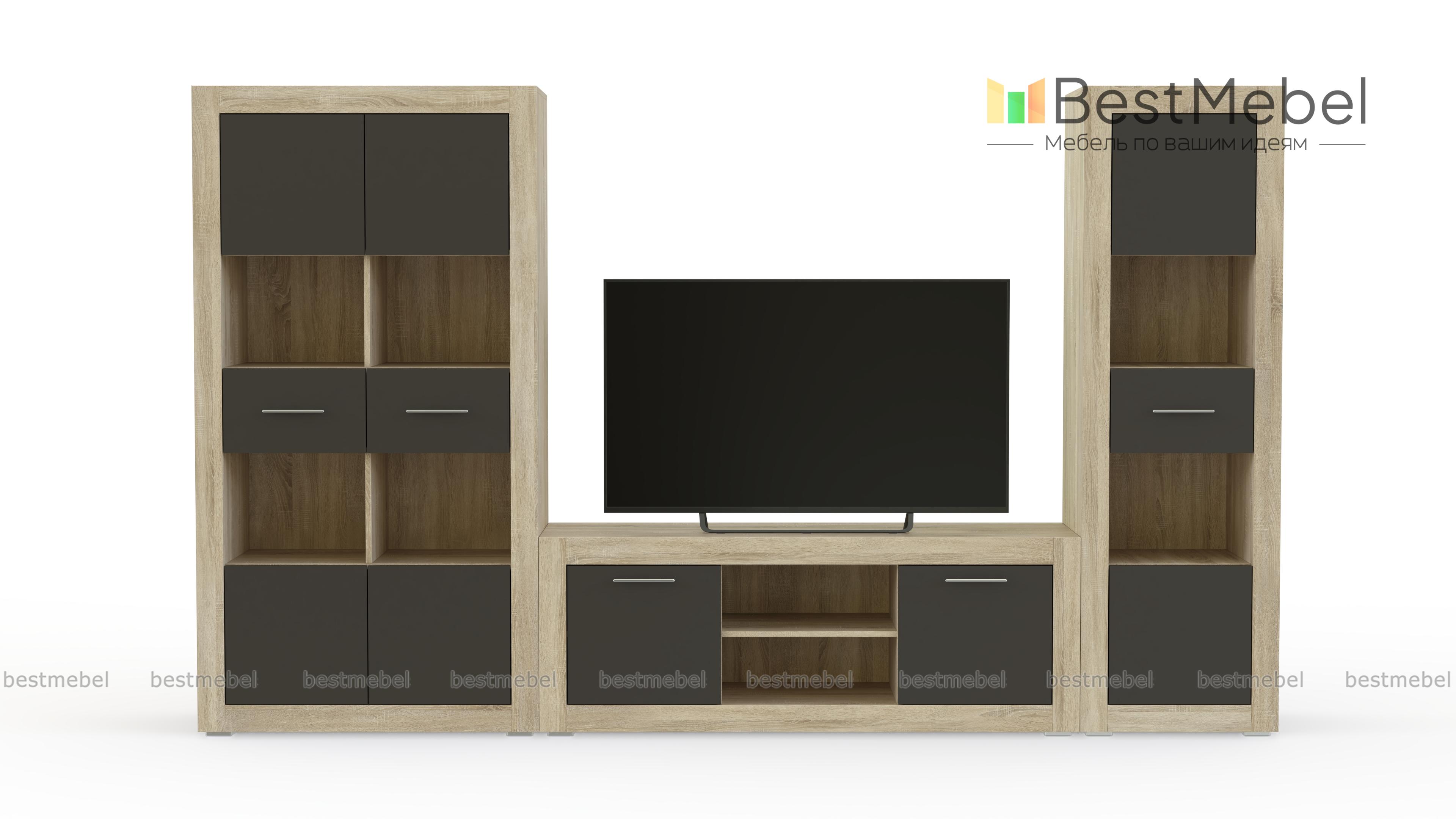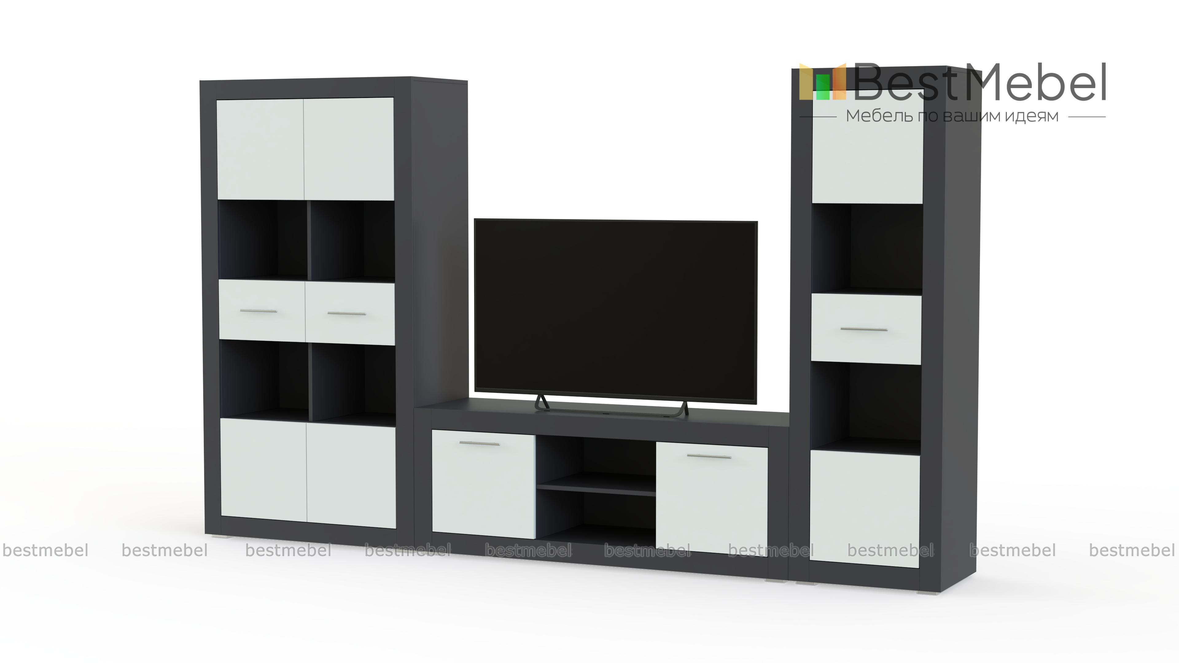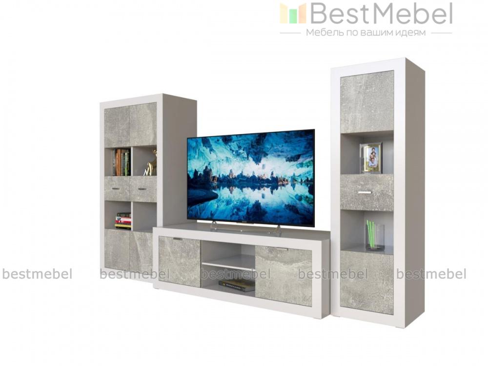 Гостиная Прага светлая 2 BMS поможет оборудовать небольшую современную квартиру или студию в стиле минимализм или хай-тек. Модульная композиция включает в себя три элемента – широкую низкую тумбу под ТВ с глухими отделениями и нишами и две невысокие комбинированные витрины. Накладки на фасады и сочетание белого с серыми глянцевыми поверхностями создают эффектную геометричность. Купить гостиную Прага светлая 2 BMS, которая выигрышно разместит аппаратуру, книги, интерьерные украшения, вам поможет наш интернет-магазин.