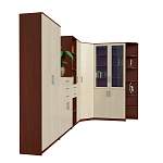 Угловая стенка Омега BMS будет гармонично смотреться как в домашнем, так и офисном интерьере. Лаконичная по форме, модульная композиция выполнена в сочетании теплых древесных тонов бежевой гаммы. Комплект включает в себя распашной платяной шкаф, угловой пенал, комбинированные колонки, тумбу, застекленный шкаф для книг и торцевой стеллаж со скругленными полками. Продуманное сочетание элементов позволит компактно разместить предметы гардероба, папки с документами, книги и декоративные предметы. Купить угловую стенку Омега BMS приглашаем недорого в наш интернет-магазин.