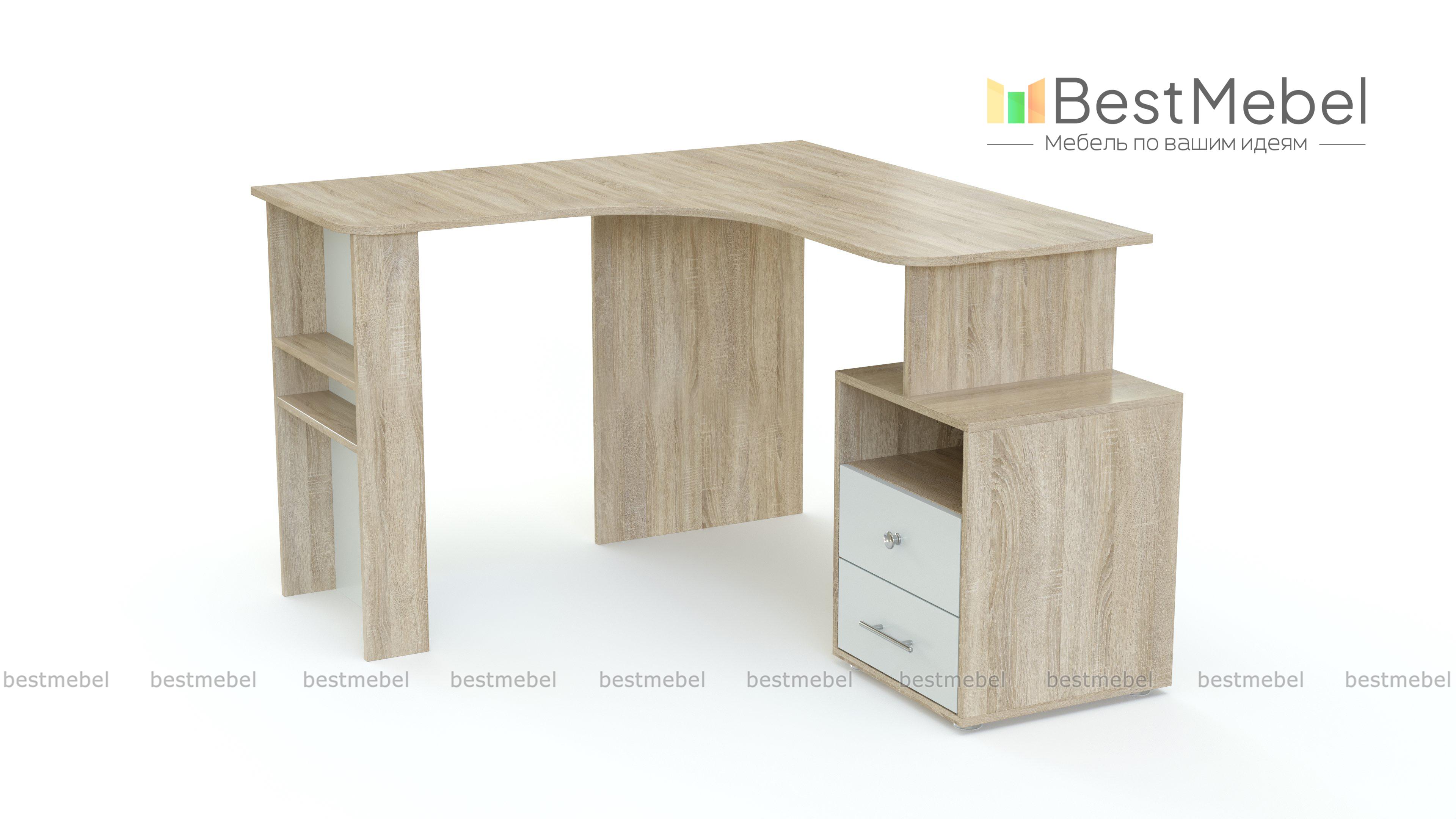 Письменный стол угловой КВ-08-2 Акварель BMS поможет обустроить в детской комфортную рабочую зону. Благодаря практичной конструкции модель выгодно использует пространство и сэкономит полезную площадь для игр. Под просторной, эргономично вырезанной столешницей располагаются тумба с нишей и выдвижными ящиками для мелочей, боковина оборудована стильными торцевыми полками. Сочетание светлых древесных оттенков и модной платины делает интерьер актуальным. Купить письменный стол угловой КВ-08-2 Акварель BMS приглашаем в наш интернет-магазин.