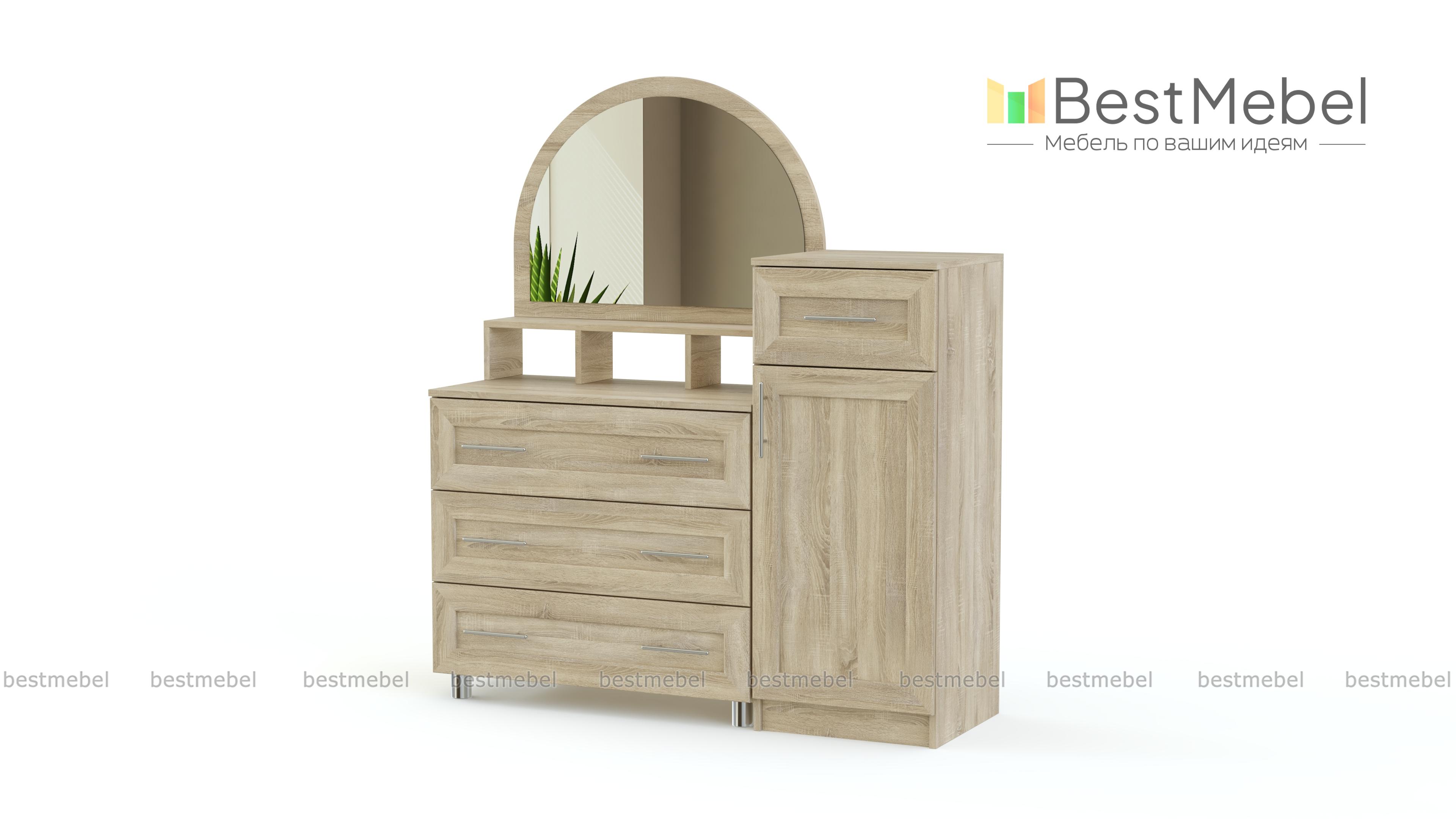Туалетный столик Милена 7 BMS выполнен из экологически чистого материала, отличающегося долговечностью и высоким уровнем износостойкости. Универсальные тона придадут помещению ощущение уюта, а фигурное зеркало позволит с удобством нанести макияж. Модель оборудована просторными выдвижными ящиками и высоким распашным отделением, что поможет расположить максимальное количество необходимых уходовых средств и важных мелочей. Купить туалетный столик Милена 7 BMS по лучшей цене приглашаем в наш интернет-магазин.