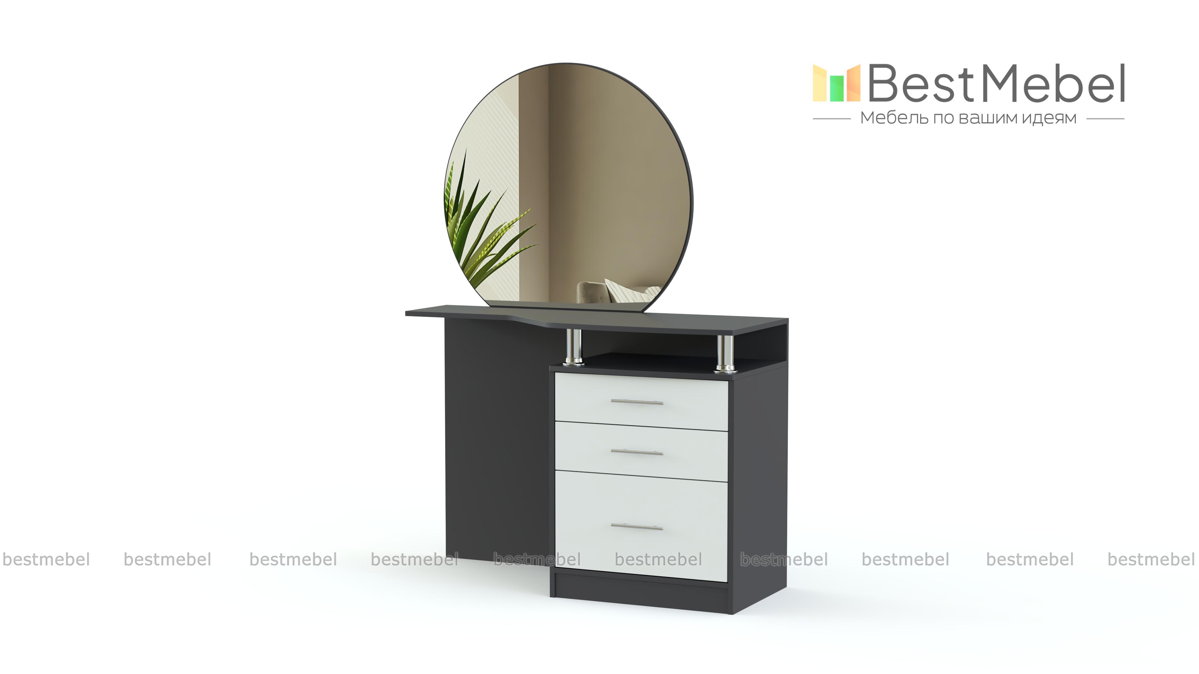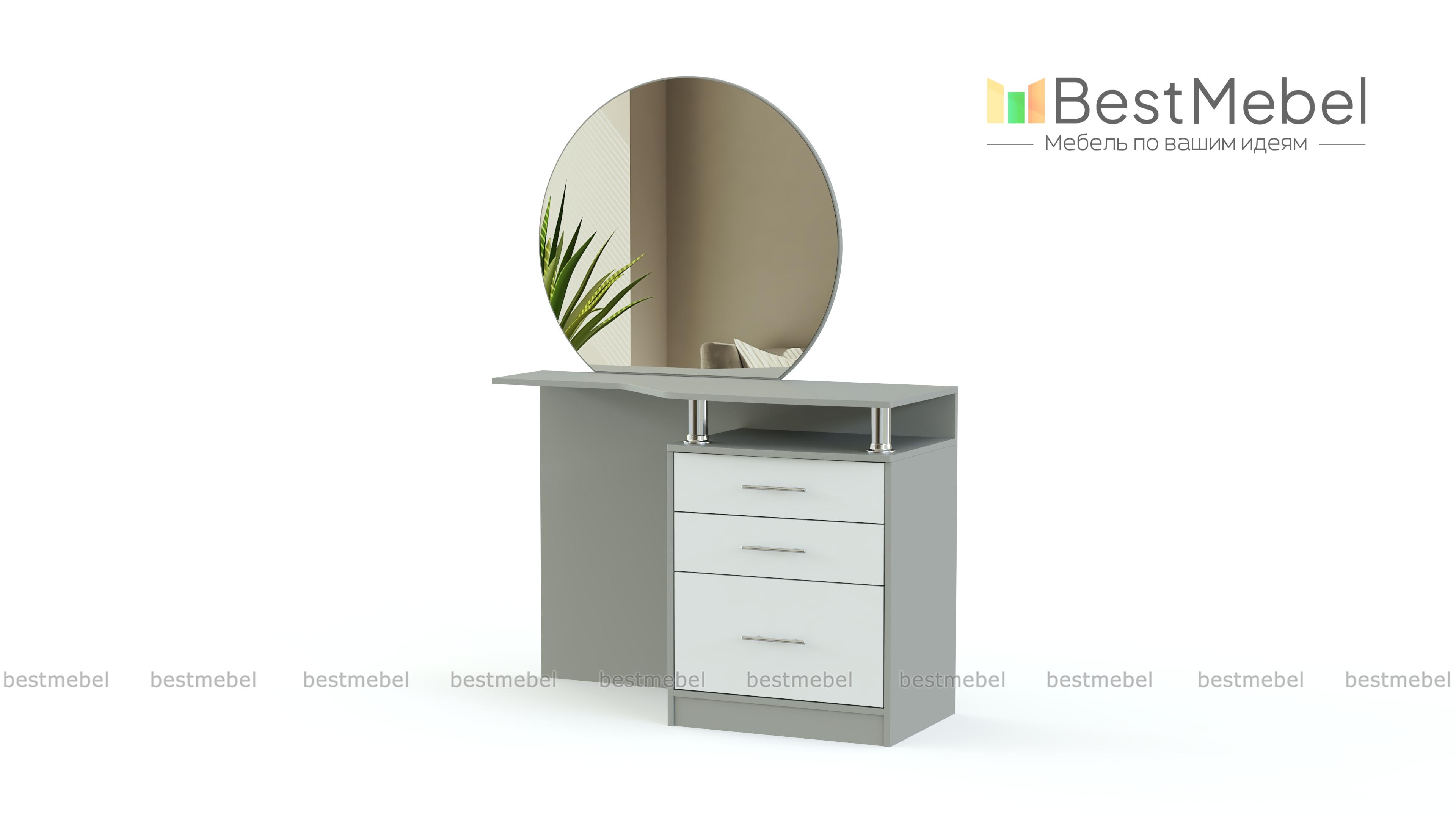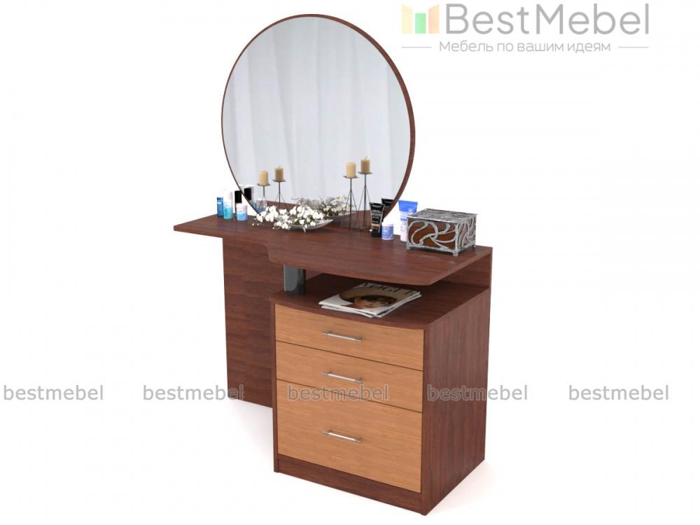 Одна из классических моделей, отлично вписывающихся в традиционные интерьеры. Круглое зеркало закреплено на широкой, удобно вырезанной столешнице, где достаточно места для косметики и парфюма. Для хранения мелочей предназначены и выдвижные ящики боковой тумбы. Туалетный столик Венеция BMS выполняется в спокойных сдержанных цветах, просто декорирован и придаст вашей комнате уют и легкий оттенок ретро. Порадует он и доступной на нашем сайте ценой.