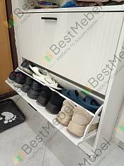Тумба замечательная, все размеры соответствуют моему заказу. Но никак без ложки дегтя. Во-первых, все-таки должна быть инструкция по сборке. Ну и за что сняла оценку: 1) шурупов коротких не хватило, это заметно на втором фото, пришлось перебирать свои запасы. Длинных зато лишнего положили. 2) не совпали отверстия для крепления секторов на откидных дверцах , пересверливали , иначе невозможно было собрать.