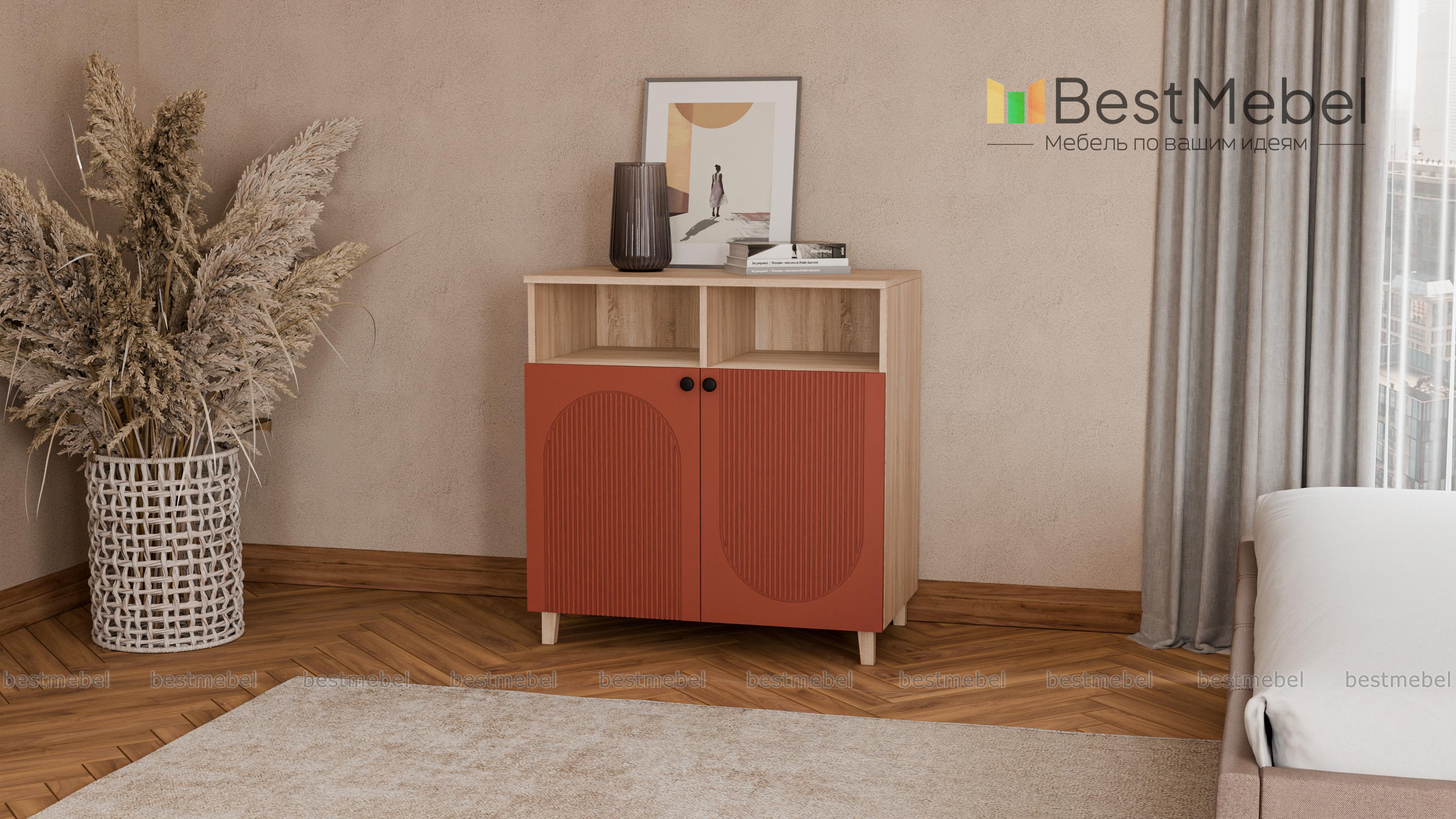 Тумба Рене 2 BMS — компактная, но при этом достаточно вместительная модель в гостиную, детскую комнату или прихожую. Конструкцией предусмотрена разделенная перегородкой ниша для книг и важных мелочей, и распашное отделение с полками для более габаритных предметов. Стильным акцентом в интерьере станет темный фасад из МДФ, украшенный геометричной фрезеровкой. Купить тумбу Рене 2 BMS вы сможете в нашем интернет-магазине, самостоятельно подобрав размеры и цвет.
