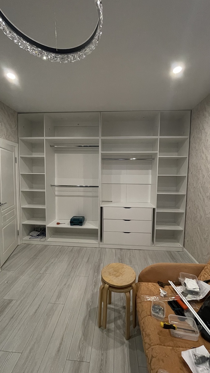 Заказ 00000924370, изделие ЭСКИЗ Шкаф распашной Остин Лайт 11 BMS (3340х2700х495)Заказала шкаф по своим размерам, и своему наполнению, на сайте все удобно, можно самостоятельно указать свои параметры. Эскиз подтвердили быстро. Через неделю шкаф был уже изготовлен, не смотря на новогодние праздники. Шкаф решили собрать сами с мужем. Все собрали без проблем