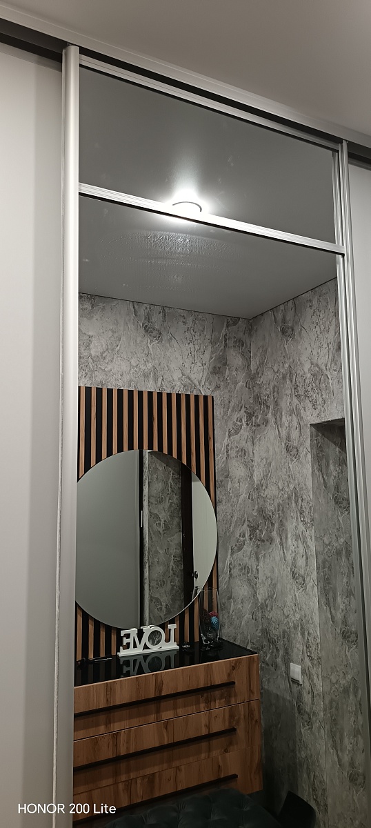 Огромный шкаф под потолок, мы его обожаем, очень нам нравится, цвет оставили без изменений и он идеально вписался под наши обои и даже не замечается особо. Очень много всего влезло и зимняя одежда вся и обувь.