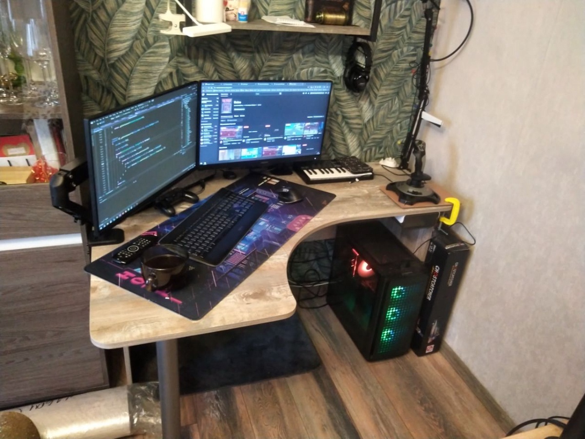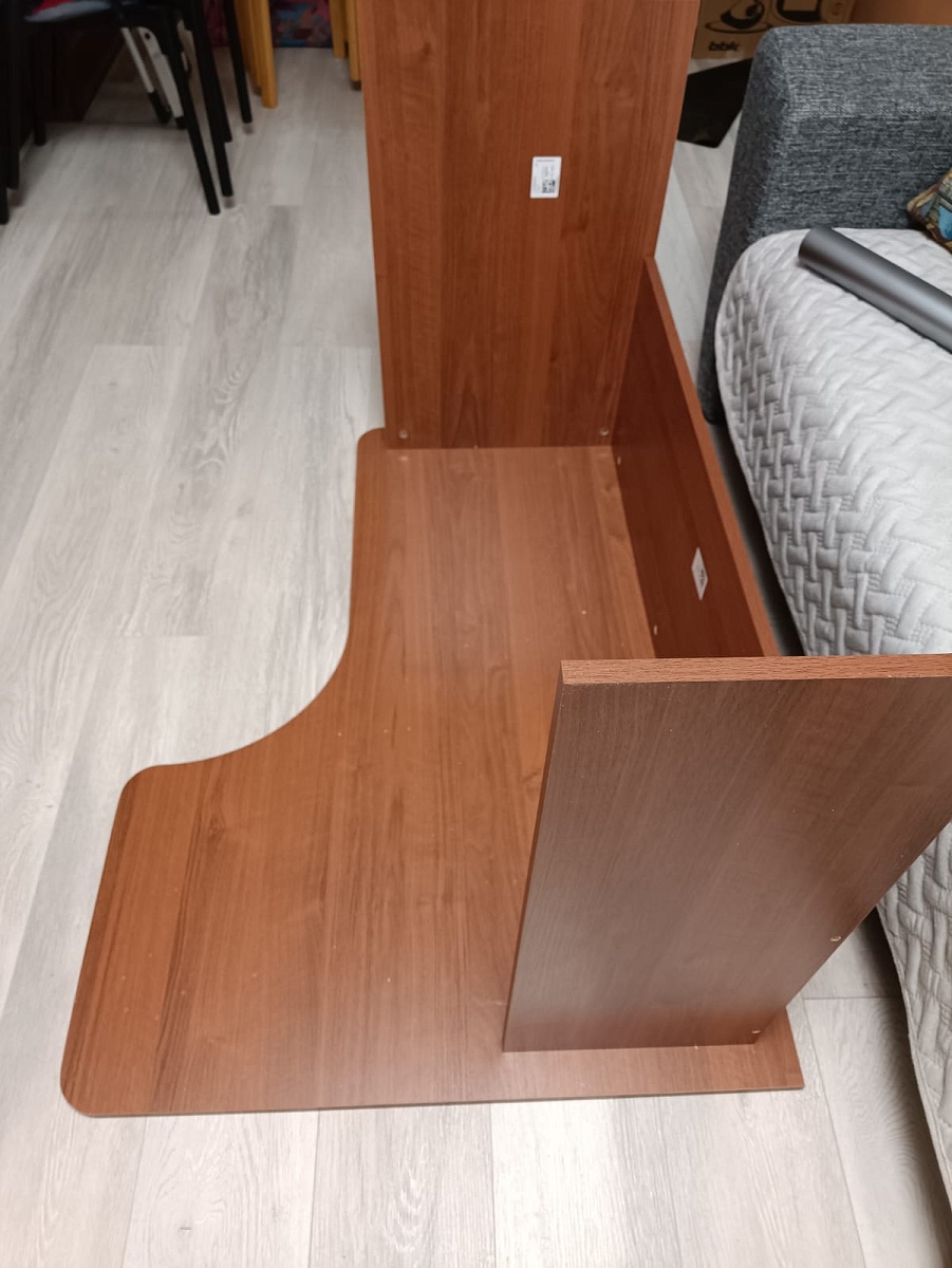 Стол очень красивый, удобный и вместительный.Заказывал нестандартные размеры - все вырезали как надо(на фото - Ш x Г x В - 1350мм x 950мм x 750мм, глубина от "выреза для пуза" до противолежащего угла - 873мм).Неспешная сборка заняла 15 минут. Все было аккуратно упаковано. Инструкция по сборке весьма минималистична, но все итак интуитивно понятно, все намечено-насверлено.По покрытию - цвет "Бетон пайн экзотик" хоть и очень красивый, но сильно отличается от превью на сайте - на сайте он намного темнее. Само покрытие рельефное, тактильно приятное.Кромка - вот тут я что-то ступил и взял стандартную кромку - 0.4мм. Советую все же заказать побольше - уж больно "острые" края стола, как будто порезаться можно, для себя решил эту проблему за 5 минут шкуркой P800.Итого - хороший стол, удобное рабочее место.