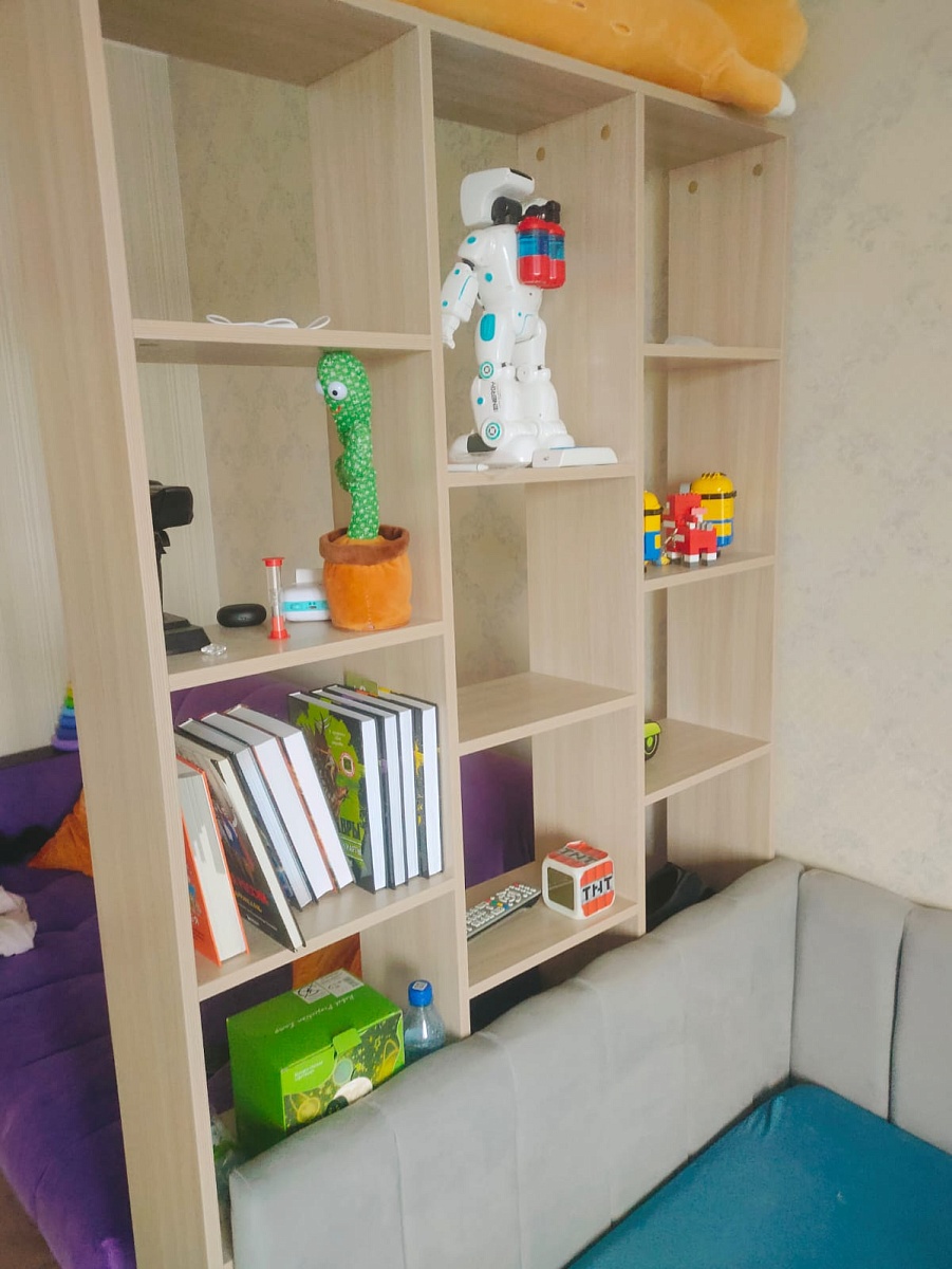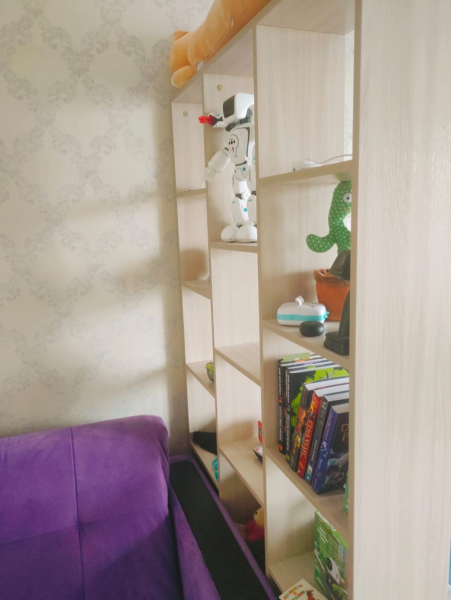Есть возможность выбрать нужный размер. Очень хорошо вписался в комнату, теперь есть две зоны — для отдыха и сна, в сборке все элементарно — даже не нужна инструкция.Недостатки:Не нашлиКомментарий:Заказ 00000915584, изделие ЭСКИЗ № 00000915584 Стеллаж Эльбрус-3 BMS (1068х1950х220).