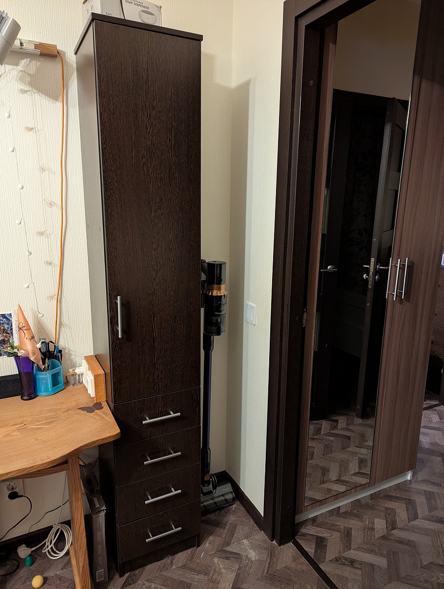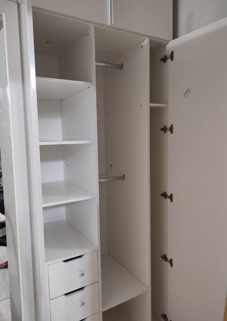 Хороший шкаф, размеры сами указали, как нам нужно было. На конец-то ящики вместительные есть! Много вещей влезло.Заказ 00000907557