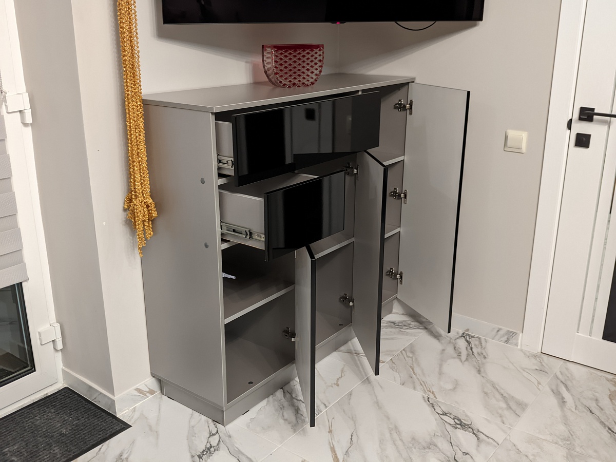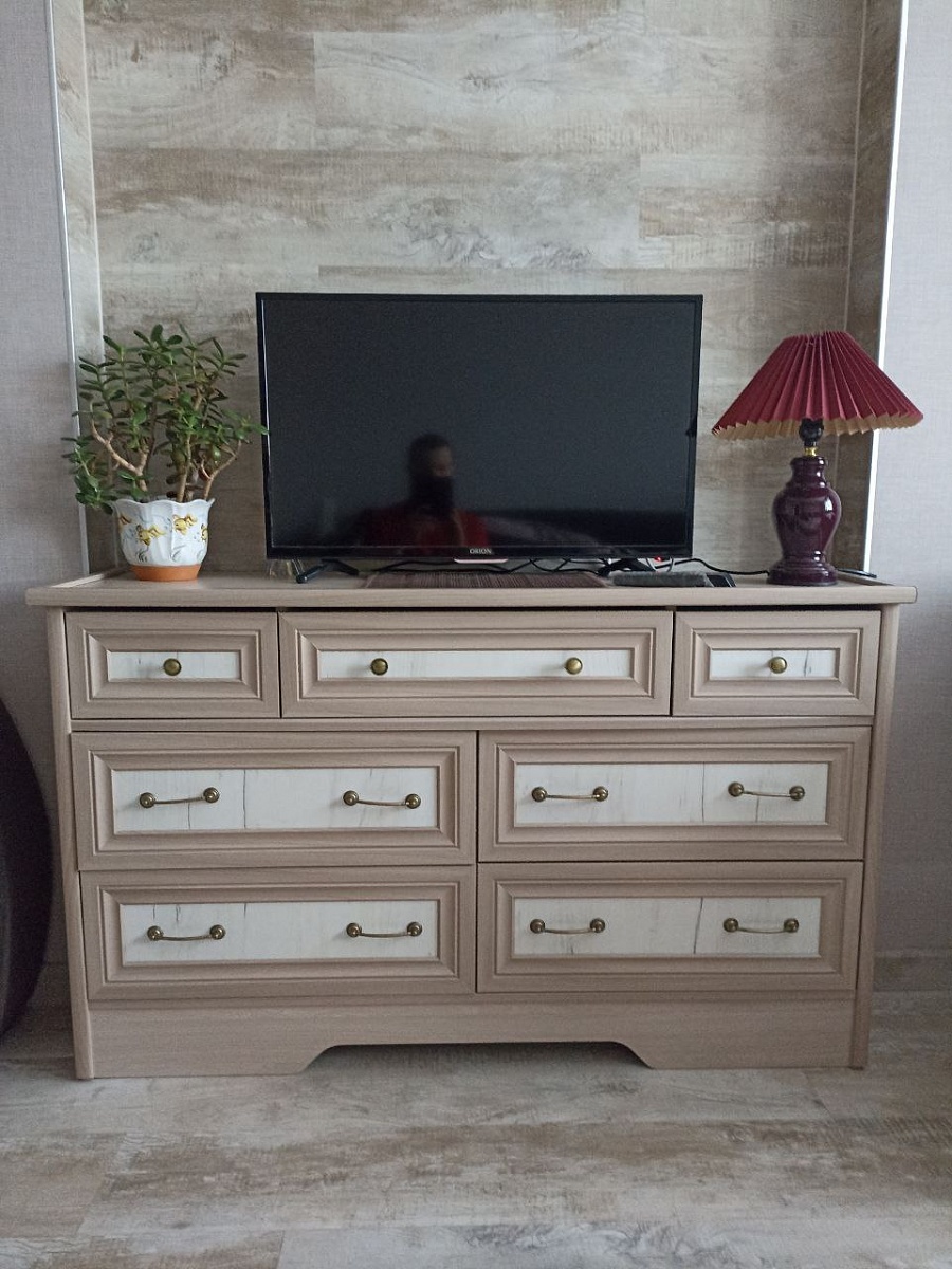 Подбирали функциональный и в то же время стильный комод в уже обставленную кухню-гостиную в дом. Во первых очень удобно, что можно сформировать габариты и цветовую гамму прямо на сайте и отправить заказ в работу - отличная передовая технология! Так же удобно, что доставка от фирмы, т.е. она заботится о максимальной сохранности товара для нас. И очень быстрый срок изготовления и доставки! С нашими размерами комод приехал в Анапу меньше чем за пять дней! Качество хорошее, с каждым вложенным рублём, скорее всего, станет лучше, но мы остановились на равновесии цены и качества ) Детали отлично обработаны, подходят при сборке хорошо, ДСП корпуса плотный, винты не прокручиваются. Самый не удобный минус - отсутствие на схеме номеров, наименований или артикулов деталей. Но в принципе и так всё собирается, только фасады ящиков нужно примерять на собраном комоде! С торцевыми ручками на ящиках и дверях удобнее открывать и смотрелось бы ещё симпатичнее. Фурнитуры с запасом, глянцевые фасады все закатаны в надёжную пленку при доставке - царапин не было. В целом мы довольны, спасибо производителю!