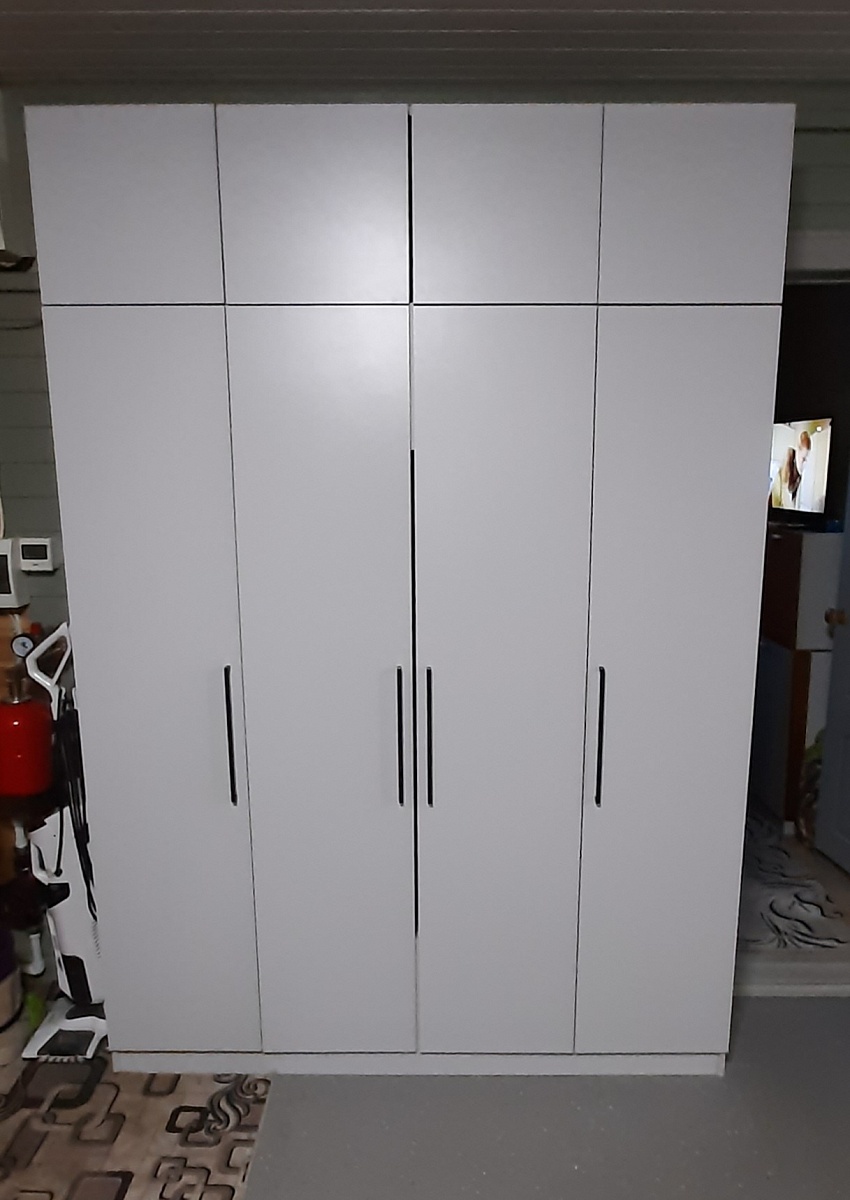 Прекрасный шкаф. Заказали по своим размерам, добавили полки, ящики. Доставка в срок.