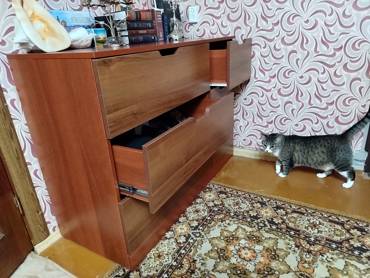 Заказ № 00000849902. Нужен был комод в комнату. Выбрали расцветку и фурнитуру (очень нравится что доступны различные варианты и можно выбрать всё на свой вкус). Ящики вместительные. Комод собирали сами. В инструкции всё понятно