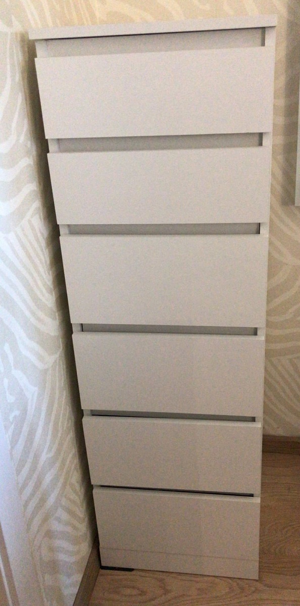 Заказ 00000788555. Отличный комод, оптимальное соотношение «цена-качество», привлекательный минималистичный дизайн. Занимает мало места, но при этом вместительный. Доставили вовремя. Единственный недостаток-непонятная инструкция по сборке. Самостоятельно собирать не решились, заказали сборку, хотя точно такой же комод из Икеа легко собрали сами.