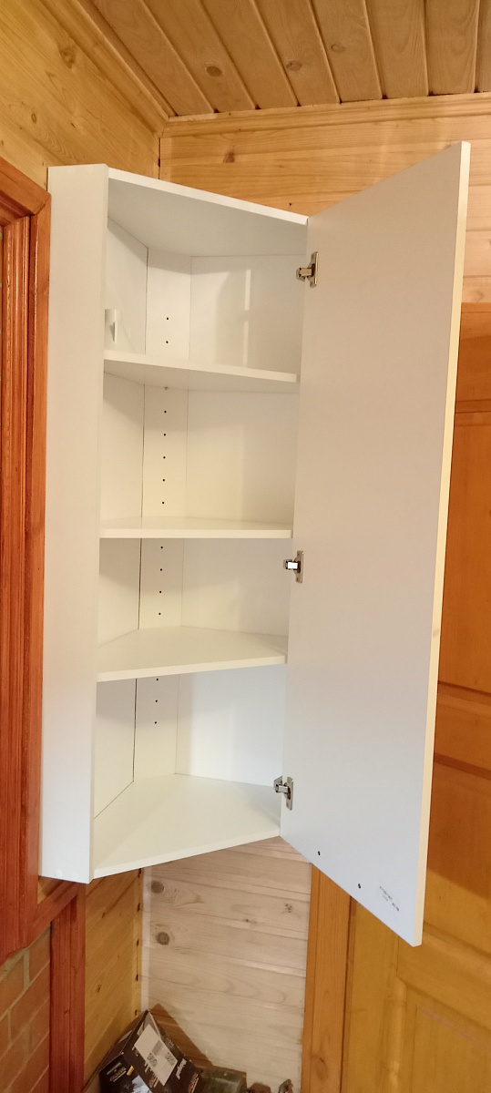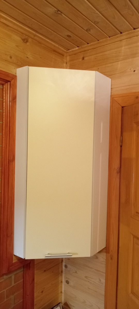 Заказ 00000733131. Очень хорошо, что можно при заказе выбрать необходимый размер с точностью до миллиметра, а также вид фурнитуры, материал фасада и корпуса, цвет, заказать дополнительную полку. Благодаря шкафу удалось функционально и эргономично использовать угловое пространство на кухне. Петли качественные, с доводчиком. Материал хороший, прочный, красивый. Все в комплекте, доставили все быстро и в сохранности.