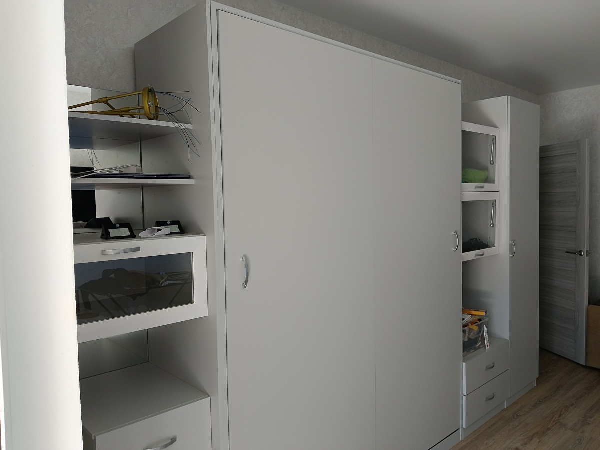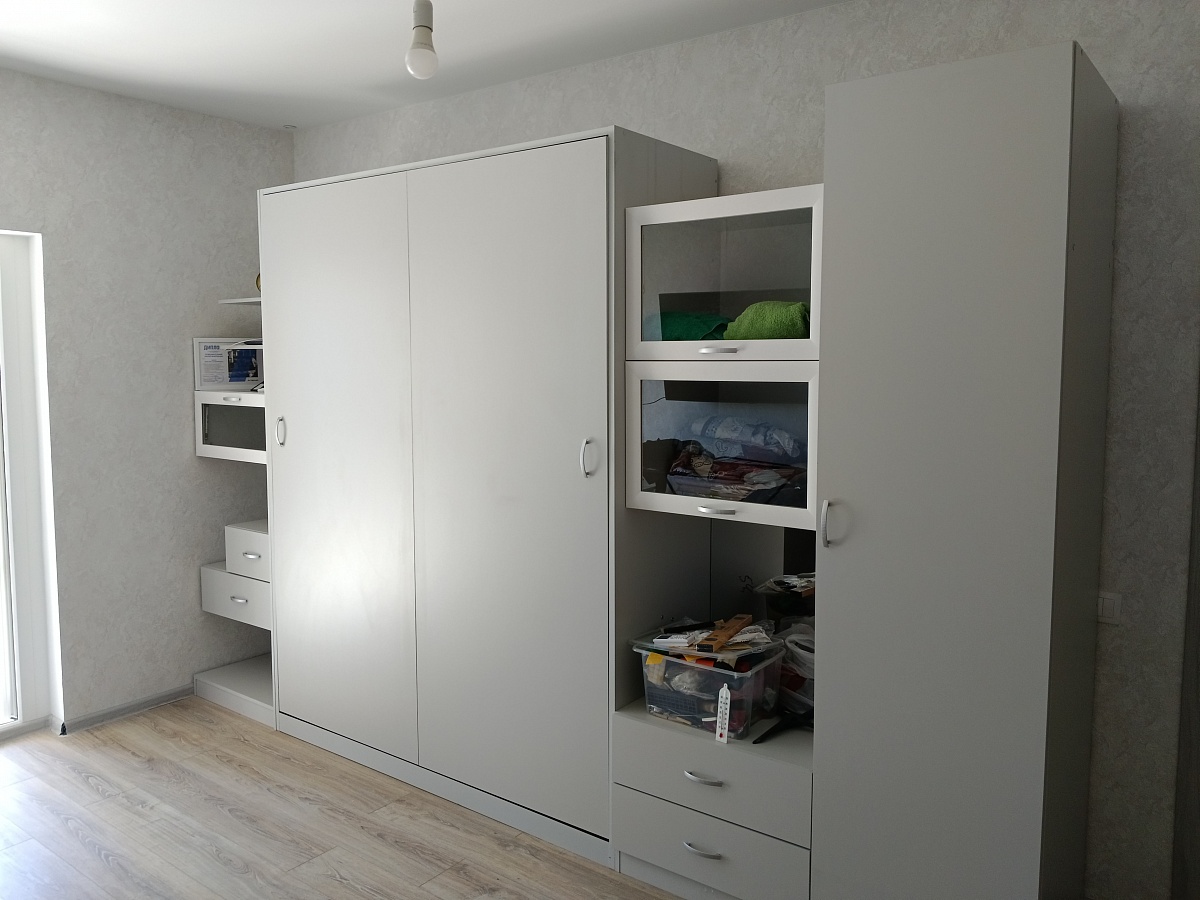 Заказал в сером цвете под обои, привезли и собрали через контакты производителя, пользуюсь пару месяцев, минусов нет, экономия пространства великолепная как и задумывалось, очень удобная нестандартная конструкция + качественный матрас и можно выспаться).