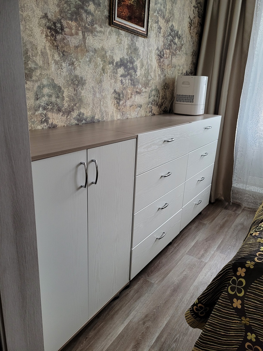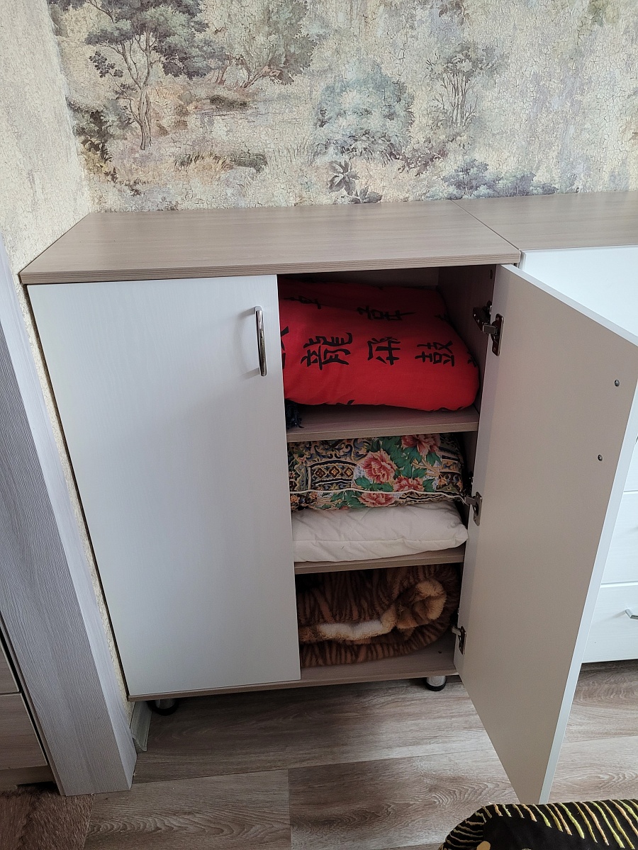 Вместительная тумба, храним там подушки и одеяла. Стоит рядом с комодом Элит 11, очень удобно что можно подобрать и цвета одинаковые и размеры и ручки.