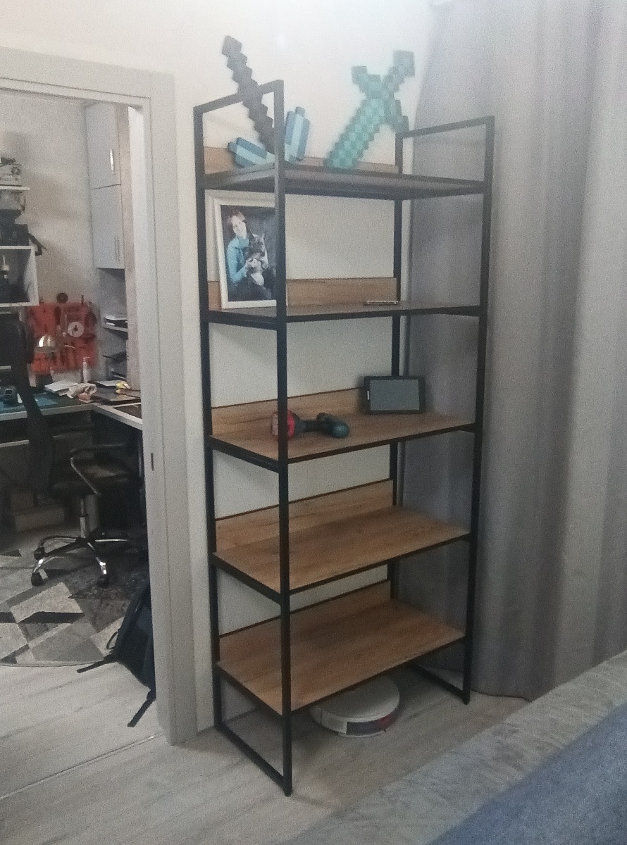 Хороший, качественный стеллаж. Сварка аккуратная, геометрия ровная. При детальном рассмотрении есть огрехи, но с полуметра ничего не заметно.