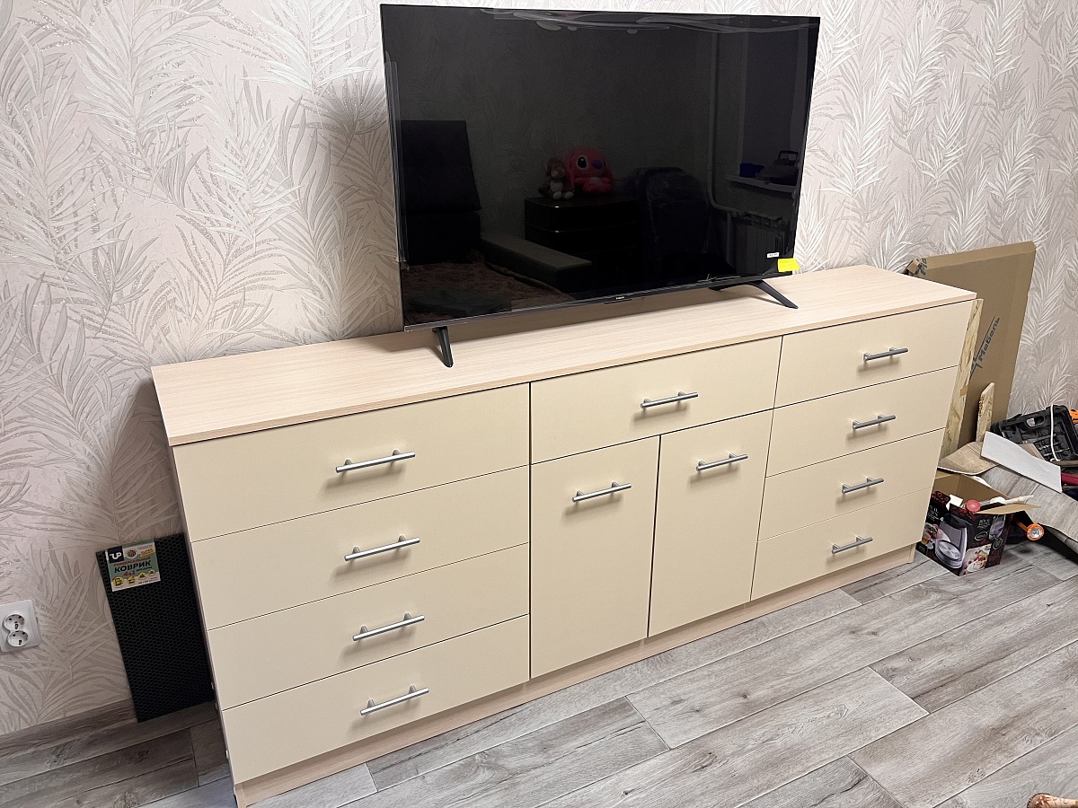 Отличный вместительный комод, влезло огромное количество вещей, большой плюс что можно выбрать самим размеры, идеально вписался в зал.