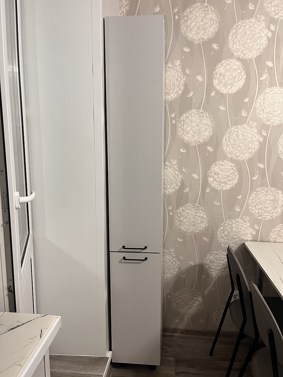 Отлично вписался на кухню, вмещает в себя много посуды, занимает мало места.